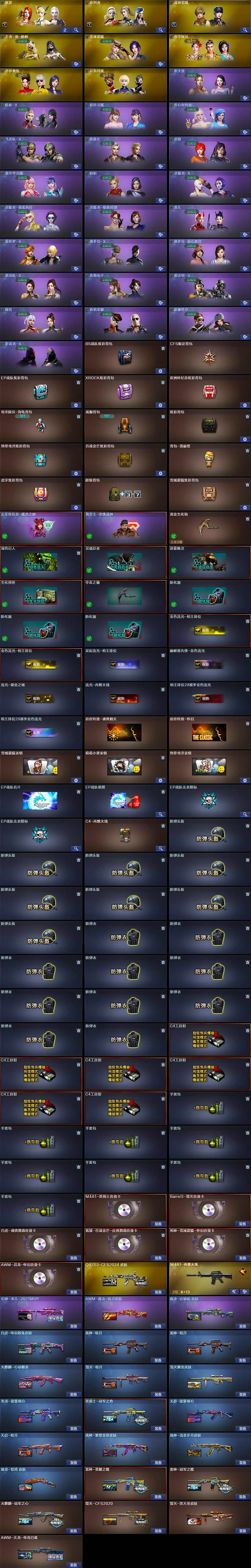 【皮肤】:幻神-宠儿-2021MVP,白虎-电玩粉兔皮肤,QBZ03-CFS2024 皮肤,AWM-裁决-凤灵皮肤,裁决-运输船 皮肤,雷神-暗月*2,雷神-荣耀之魄,雷神-冠军之魄,M4A1-再燃火线,火麒麟-冠军之心,火麒麟-心动糖果,毁灭-暗月,毁灭耀金皮肤,毁灭-CFS2020,毁灭-黑大圣皮肤,黑龙-能量核心,黑骑士-冠军之势,无影-能量核心,天启-暗月,战神-紫绶金章皮肤,战神-流金岁月皮肤,AK47-B-常胜将军-刘备,AK47-B-常胜将军-孙权*2,AWM-天龙-传奇白鲨,屠龙-惊鸿 皮肤,轻型军用手斧-再燃火线