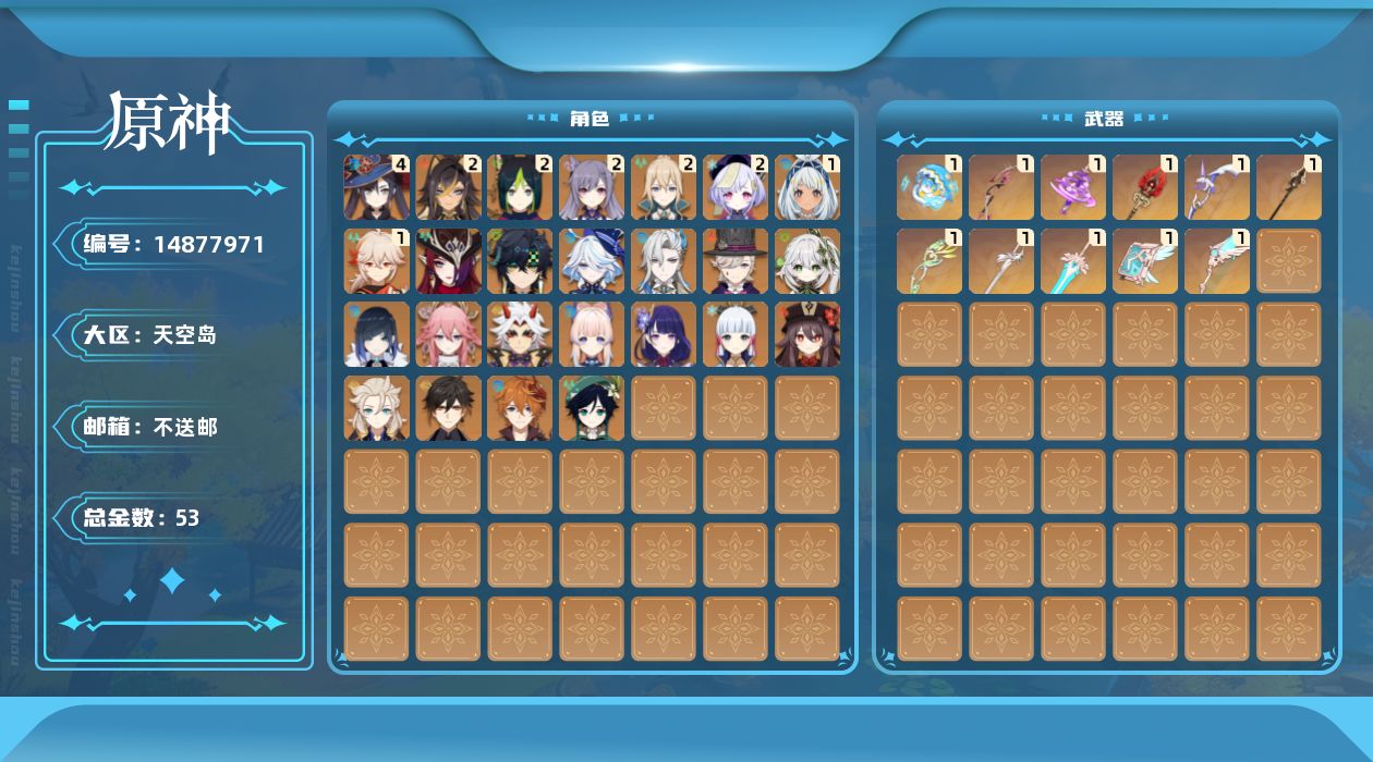[14877971]60级/53黄/女主/25个五星角色/12个五星武器