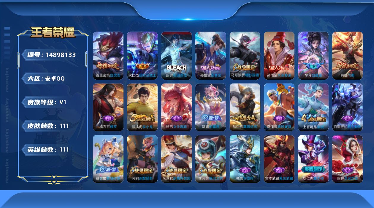 [14898133]安卓Q-111英雄-111皮肤-2传说-24史诗
