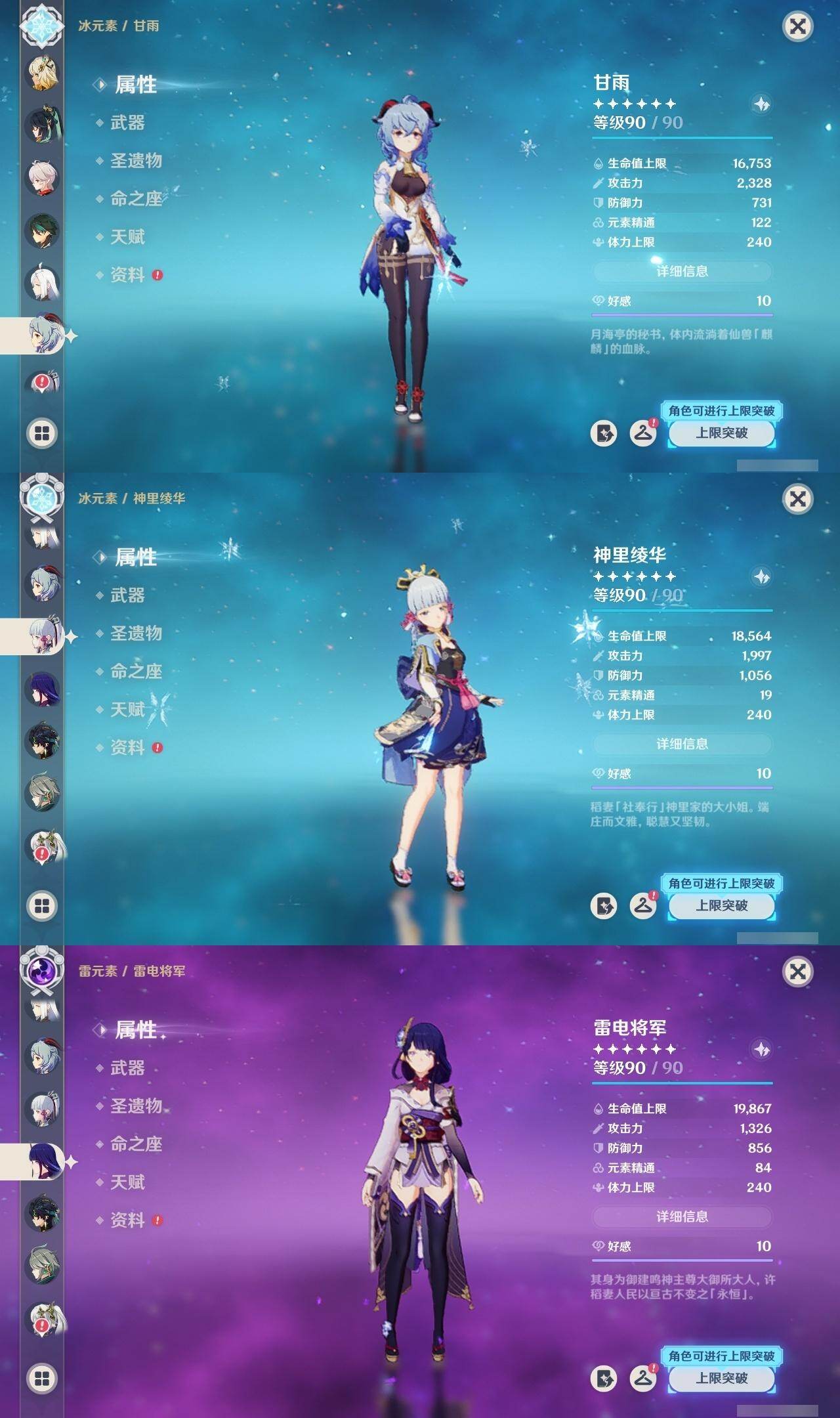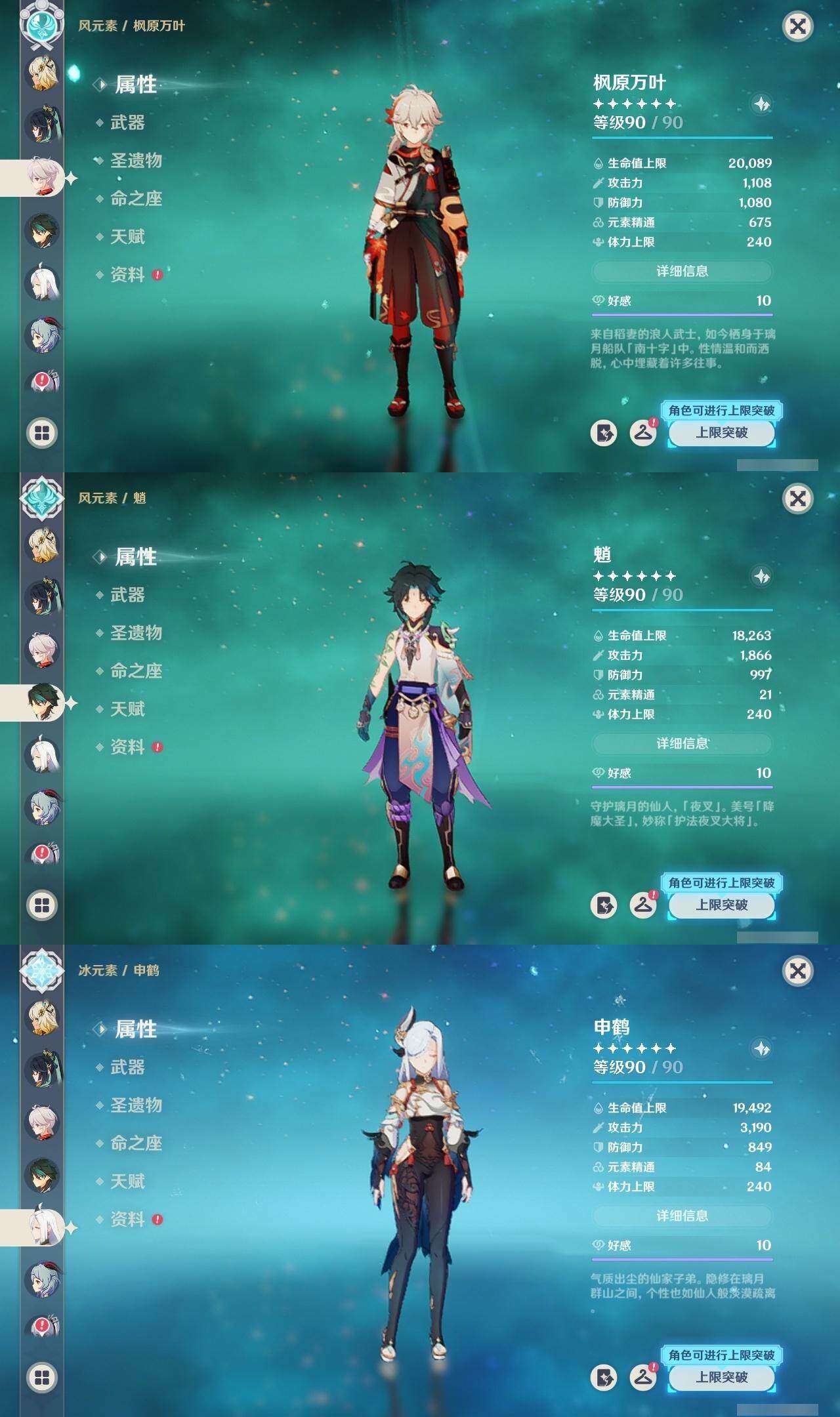 钟离,琴,枫原万叶,魈,申鹤,甘雨,神里凌华,雷电将军,达达利亚,莫娜,迪卢克,七七,可莉,刻晴