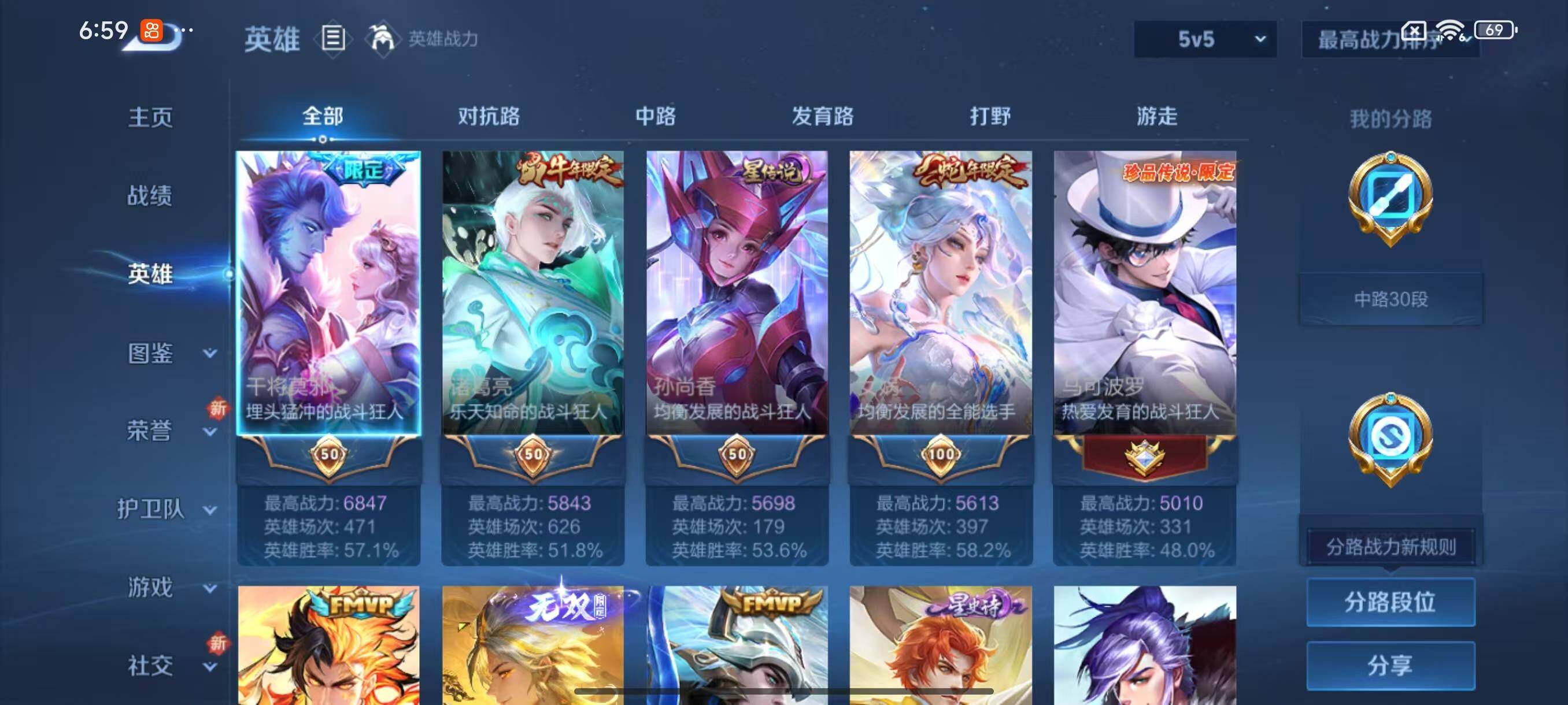 【赛季限定】:芈月重明,夏侯惇朔风刀,曹操烛龙,典韦穷奇,狄仁杰万华元夜,达摩沙漠行僧,老夫子醍醐杖,程咬金演武夺筹,兰陵王金庭之子,张良古海寻踪,李元芳云中旅人,钟馗驱傩正仪,雅典娜黎明之约,鬼谷子原初探秘者,