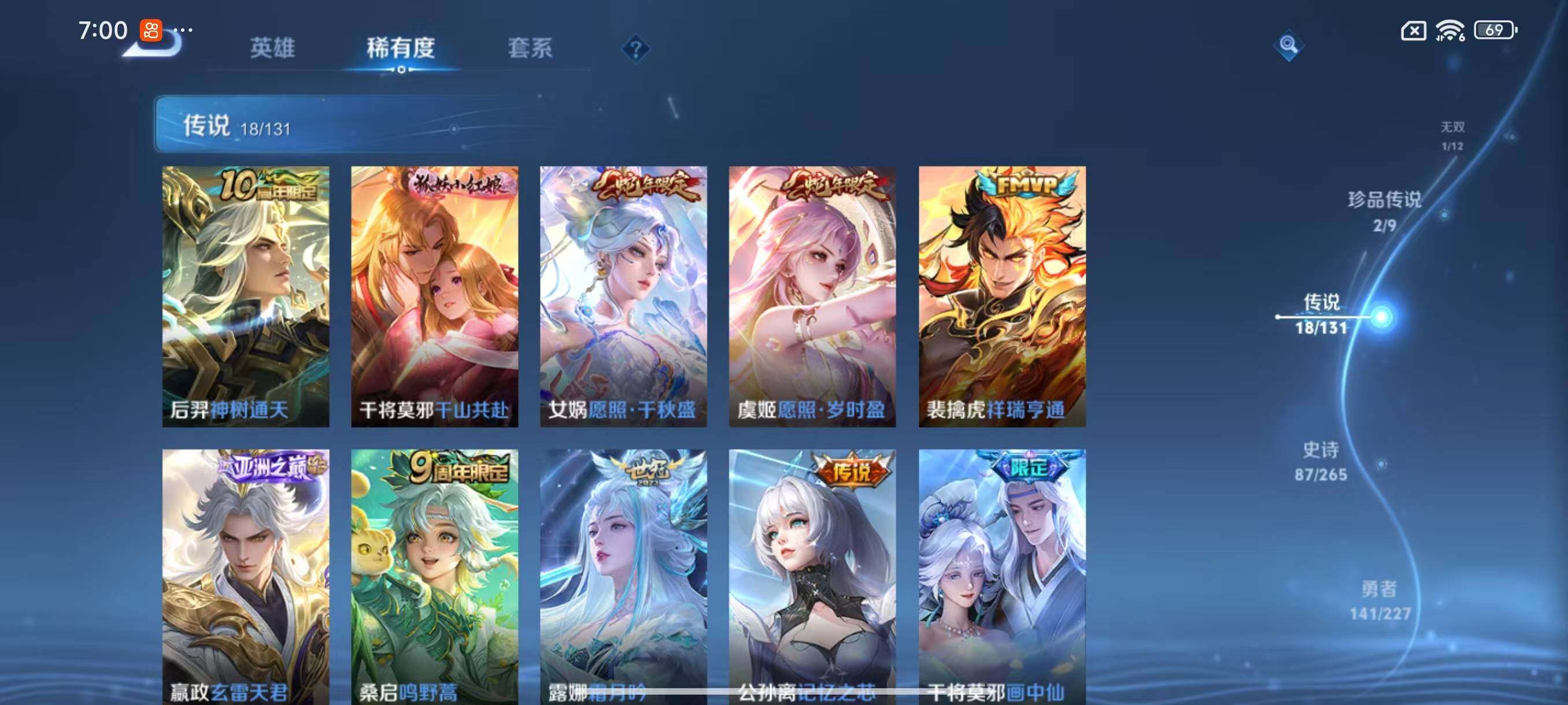 [14898350]安卓Q-V8-311皮肤-1典藏皮肤-1无双-2珍品传说-18传说-87史诗