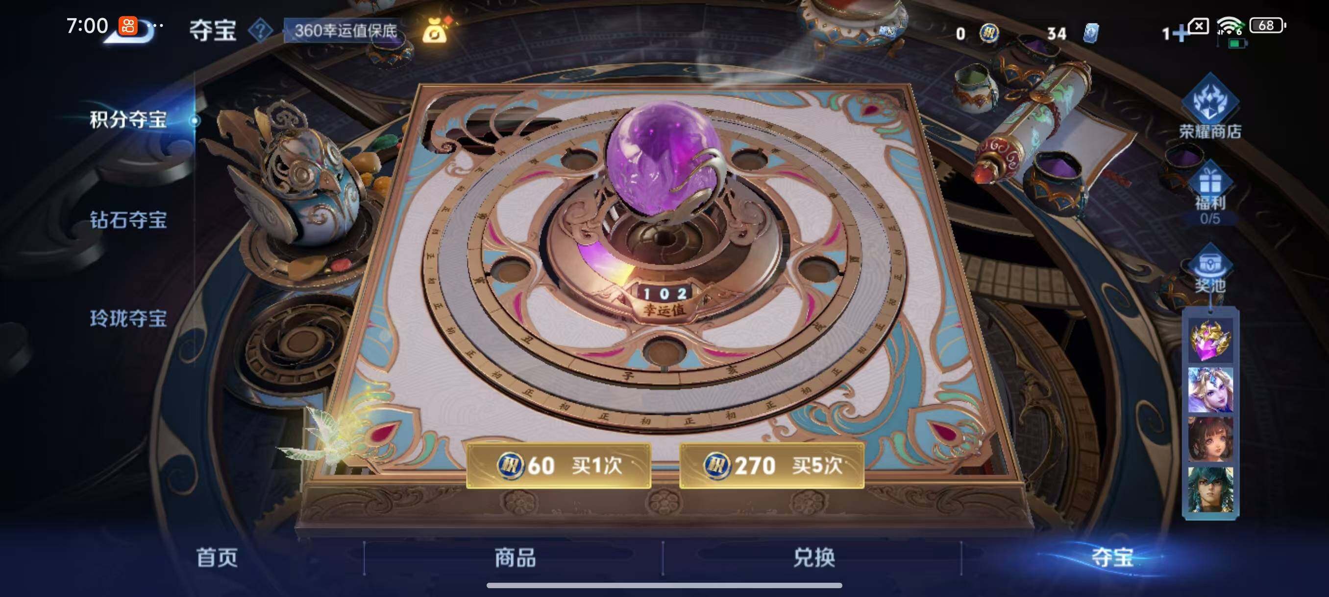 达摩黄金狮子座,干将莫邪久胜战神,李信一念神魔,马超无双飞将,干将莫邪画中仙,公孙离记忆之芯,露娜霜月吟,嬴政玄雷天君,裴擒虎祥瑞亨通