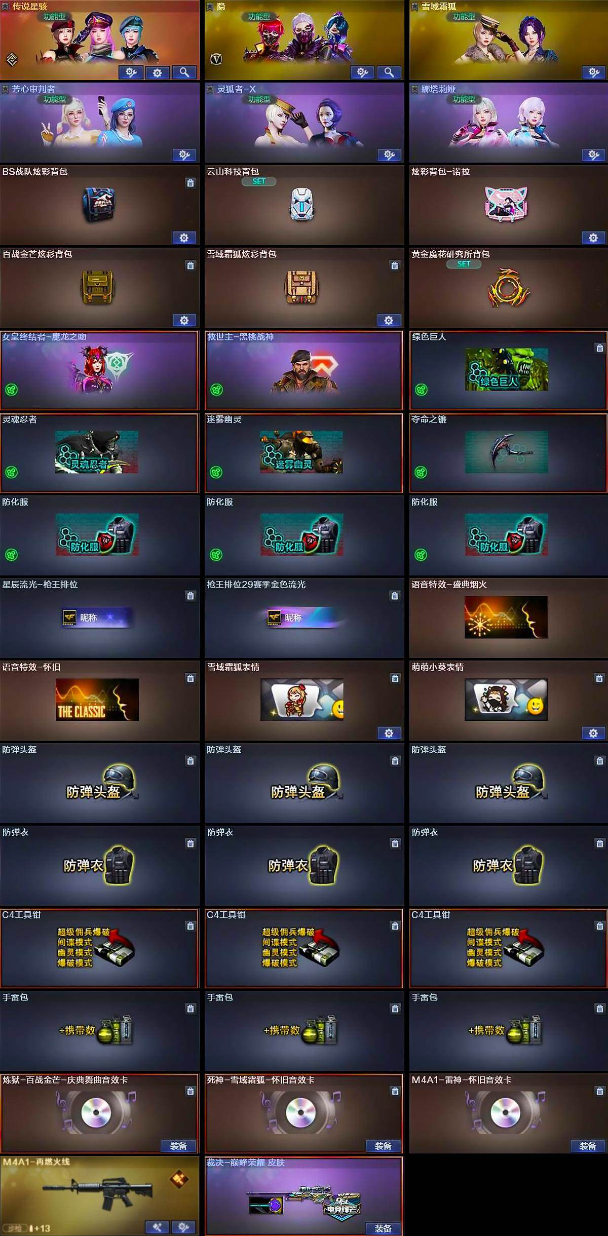 【音效卡】:炼狱-百战金芒-庆典舞曲音效卡,死神-雪域霜狐-怀旧音效卡,M4A1-雷神-怀旧音效卡