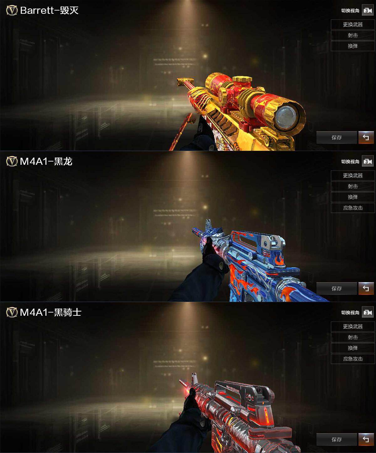 - [11569833]1炫金武器 3V武器 可二次 可修改实名 优质装备:M200-幻神,M4A1-青龙,M14EBR-玄武 排位资格:有 炫金武器:炫金毁灭