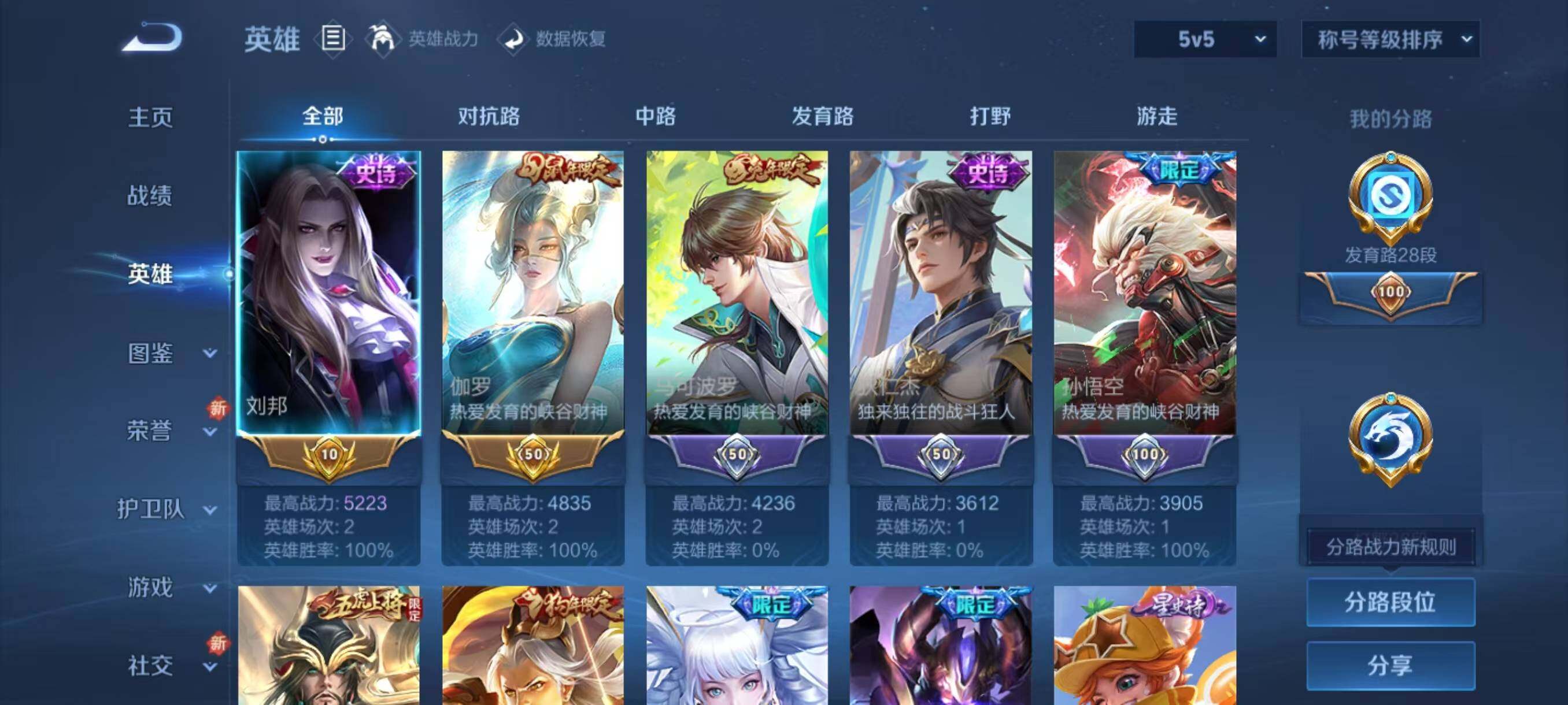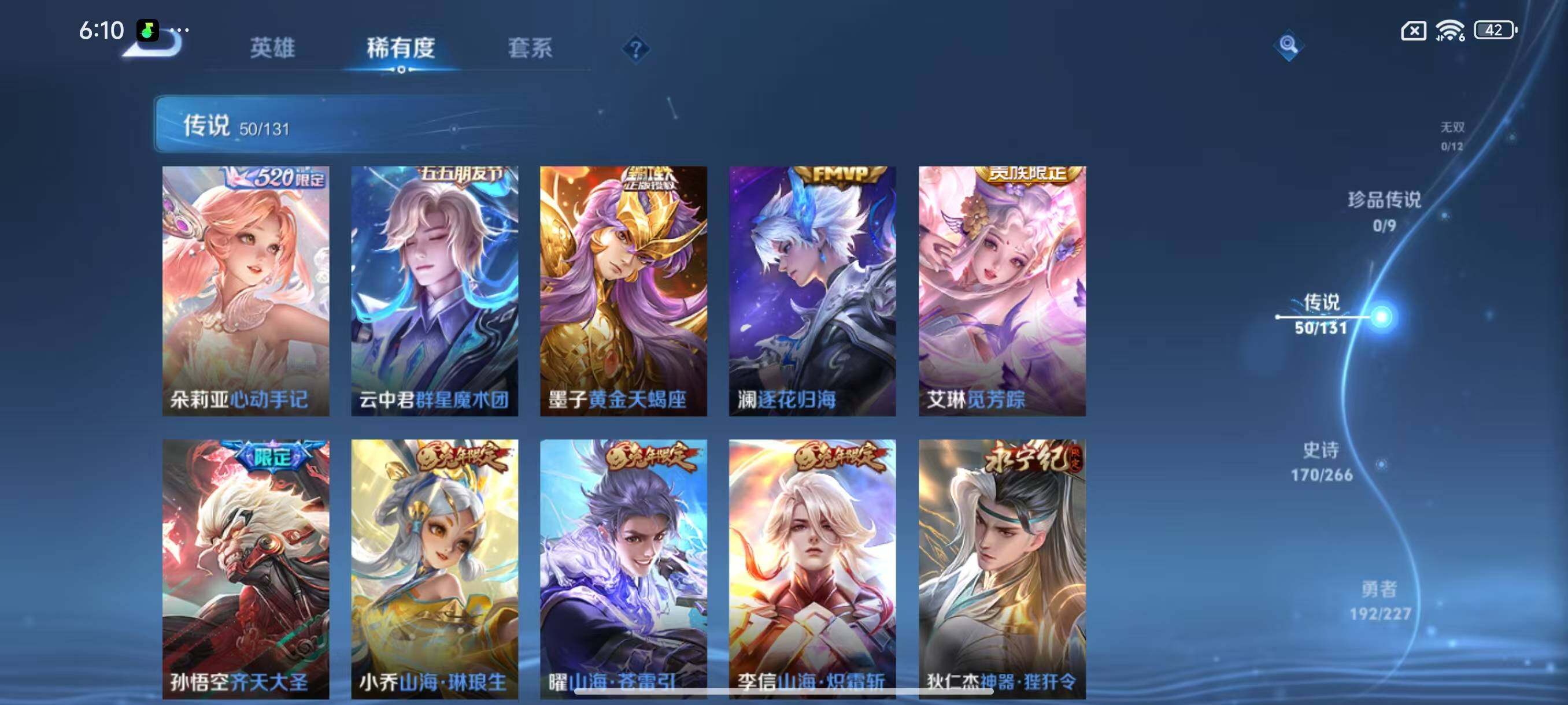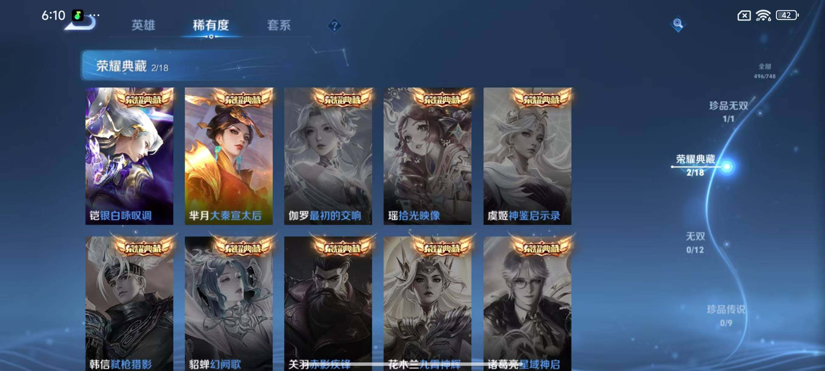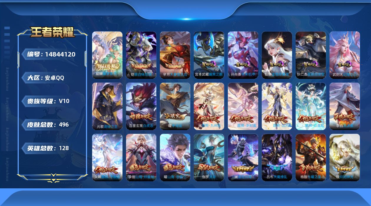 [14844120]省标刘邦 省标伽罗 安卓Q-496皮肤-2典藏皮肤-1典藏英雄-1珍品无双-50传说-169史诗
