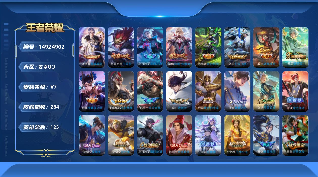 [14924902]安卓Q-284皮肤-1典藏皮肤-14传说-73史诗