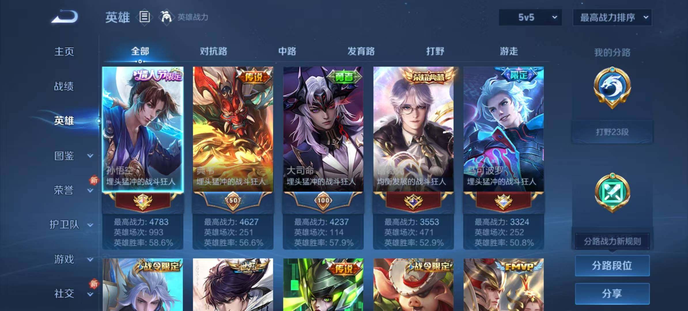 - PX_2085543-实名: 可修改 性别: 男号 贵族等级: V6 英雄数: 119 皮肤数: 145 传说皮: 黄金射手座,冠军飞将,一念神魔,无双飞将 限定皮: 李小龙,梁祝,蜜橘之夏,飞衡,冰霜恋舞曲,凤求凰,朱雀志,至尊宝,如梦令-后羿,高山流水,猪悟能 亮点: 【店长推荐精品号】15王者印记,金标露娜战力8737,5传说皮肤。后羿黄金射手座,花木兰冠军飞将,李信一念神魔,马超无双飞将,