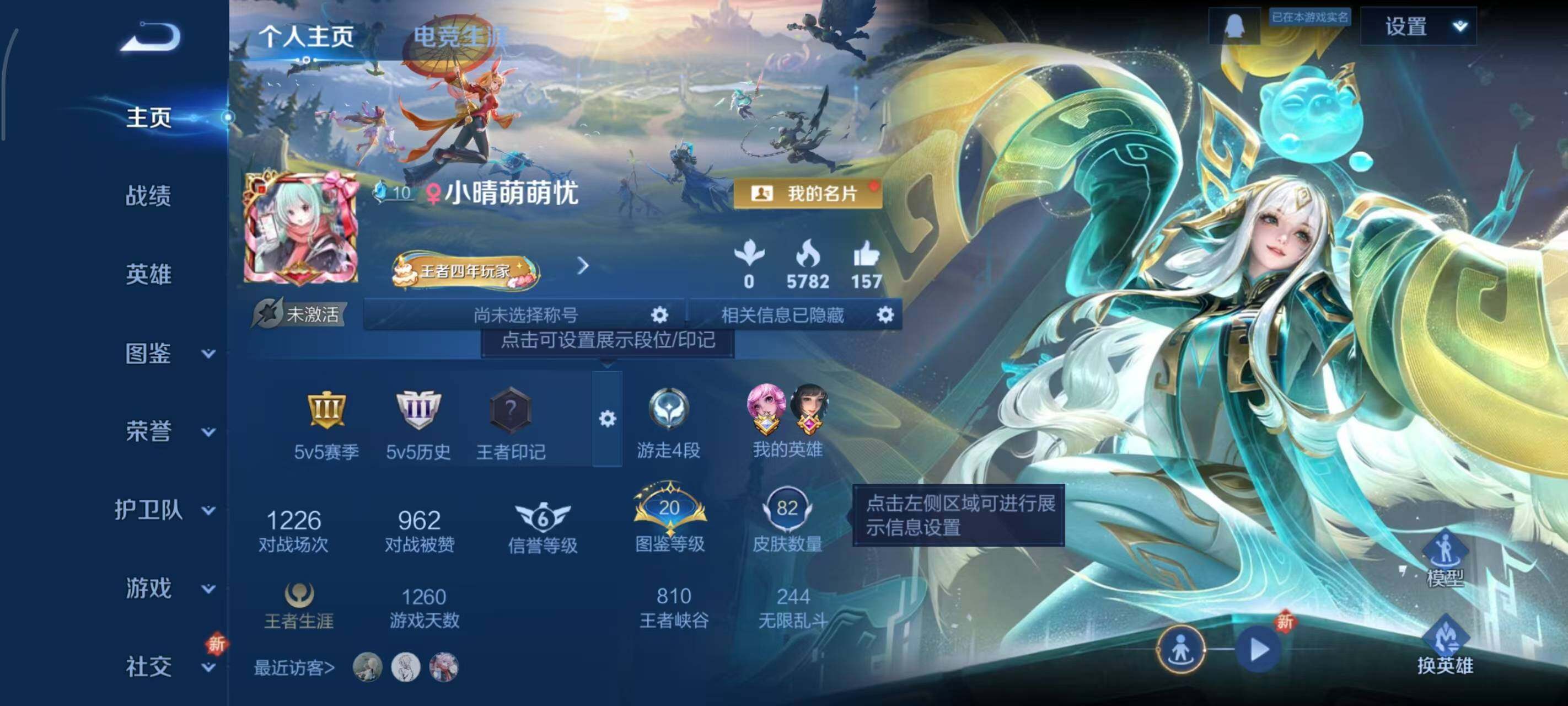 - [11733652]V4 3传说 105英雄 138皮肤 可修改实名 女号 优质装备:遇见胡旋 珍宝阁皮:蔷薇恋人 限定皮:鸣野蒿,山海·碧波行(瑶年限),至美·乘鲤谣,高山流水,五谷丰年,时之祈愿-瑶(瑶传限),时之奇旅-妲己 史诗皮:星界战将,遇见神鹿,江河有灵,蒙恬荣光圣徽,偶像歌手,电玩·爆裂旋风,猫狗日记-孙策,水果甜心,天才门将,心灵骇客,暗隐猎兽者,幽灵船长,鬼剑武藏,舞动绿茵,缤纷独角兽,水晶猎龙者,金属风暴,原初追逐者,圣诞恋歌,鹰眼统帅,魅力维加斯,黎明之约,未来纪元-赵云