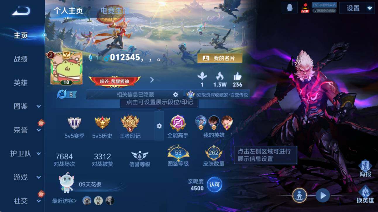 - [12234745]V9 5典藏 16传说 126英雄 336皮肤 典藏英雄武则天 可修改实名 优质装备:倪克斯神谕(宇宙婆娘),杀手不太冷,大秦宣太后,鸣剑·曳影,赤影疾锋,黄金白羊座,地狱火,李逍遥,超时空战士-狄仁杰,末日机甲-孙策,妄想实况 珍宝阁皮:优雅恋人,女武神,玩趣恶龙 限定皮:愿照·九州拓(澜年限),愿照·千秋盛(女娲年限),白虎志(电光耗子),凤求凰(白切鸡),凤凰于飞,飞衡(韩信年限),遇见飞天,高山流水,怒海麟威,五谷丰年,冰锋战神,武圣,游园惊梦,梁祝,天狼狩猎者,逐梦之星,李小龙,永曜之星,圣诞老人,奇迹圣诞,一生所爱,大圣娶亲,引擎之心,冰霜恋舞曲,蜜橘之夏,寅虎·瑞焰(虎皮蛋子),寅虎·赤拳(老虎年限),时之祈愿-云中君,山海·玄木吟(马可年限) 史诗皮:器灵·浮梦炉,化蝶舞,灵蛊蚀心,星界战将,百相守梦-黄忠,紫霞仙子,苍穹之光,白龙吟,黄金分割率,特工魅影,千年之狐,永昼,江河有灵,魅语,百解令(蒙犽),蒙恬荣光圣徽,无限星赏官,冰冠公主,偶像歌手,晚萤,暗夜猫娘,龙骑士(小龙虾),末日机甲-吕布,猫狗日记-孙策,猫狗日记-大乔,乱世虎臣,节奏热浪,修罗,女仆咖啡,摇滚巨星,水果甜心,绅士熊喵,天才门将,星夜王子,心灵骇客,功夫厨神,德古拉伯爵,暗隐猎兽者,幽灵船长,鬼剑武藏,暗渊魔法,心灵战警,天秀·启明,舞动绿茵,地狱岩魂,纤云弄巧,缤纷独角兽,乘风破浪,逐浪之夏,月团寄思,水晶猎龙者,曙光守护者,热力回旋,箭羽风息,金属风暴,原初追逐者,圣诞狂欢,圣诞恋歌,鹰眼统帅,暗夜贵公子,魅力维加斯,无心,未来纪元-赵云