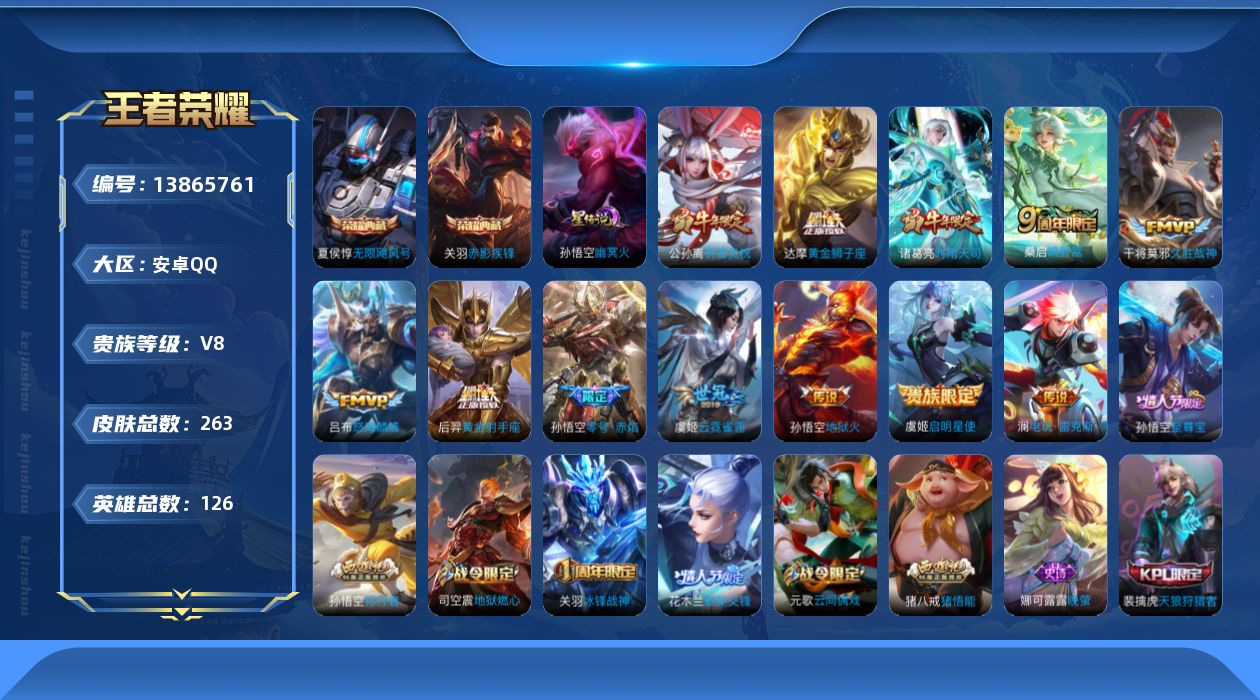 [13865761]安卓Q-258皮肤-2典藏-12传说-68史诗