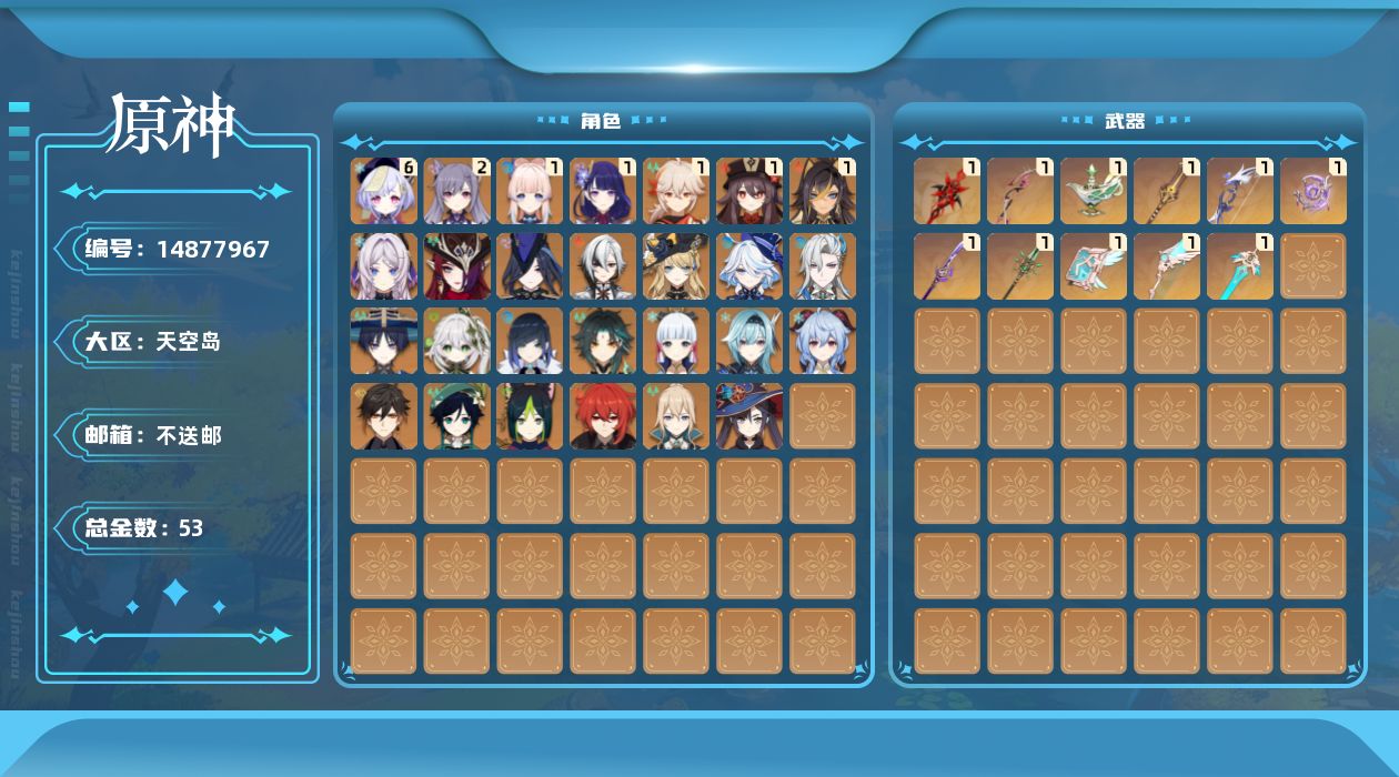 [14877967]60级/53黄/男主/27个五星角色/13个五星武器