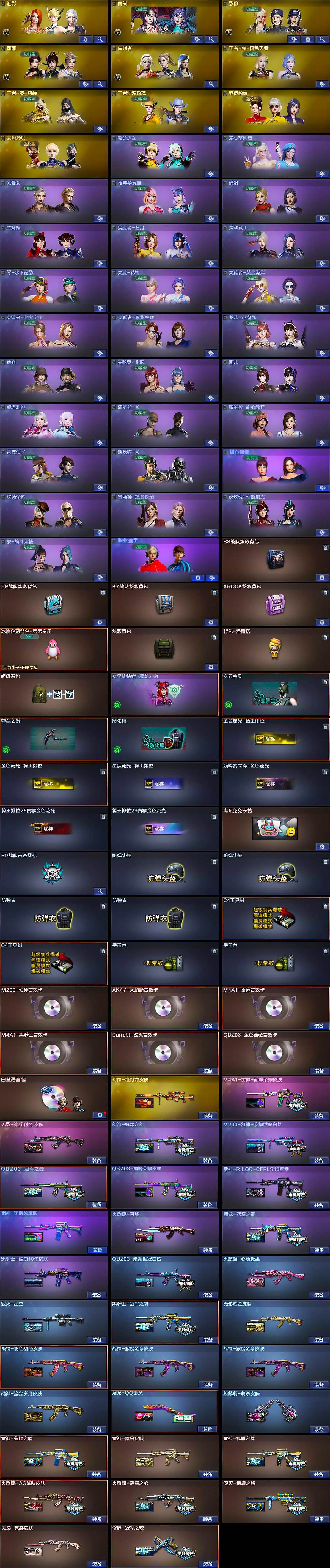 【皮肤】:幻神-冠军之幻,M200-幻神-荣耀世冠白鲨,幻神-纸灯龙皮肤,QBZ03-冠军之薇,QBZ03-荣耀世冠白鲨,QBZ03-巅峰荣耀皮肤,雷神-荣耀之魄,雷神-耀金皮肤,雷神-冠军之魄,雷神-R.LGD-CFPLS18冠军,雷神-宇航兔皮肤,M4A1-雷神-巅峰荣耀皮肤,火麒麟-AG战队皮肤,火麒麟-冠军之心,火麒麟-百城,火麒麟-心动糖果,毁灭-荣耀之怒,毁灭-星空,黑龙-冠军之武,黑骑士-冠军之势,黑骑士-破浪10年皮肤,无影耀金皮肤,无影-霓裳皮肤,无影-神兵利器 皮肤,战神-粉色甜心皮肤,战神-紫绶金章皮肤*2,战神-流金岁月皮肤,AK47-B-常胜将军-刘备*2,AK47-B-常胜将军-孙权*2,修罗-冠军之魂,屠龙-QQ会员,麒麟刺-萌杀皮肤