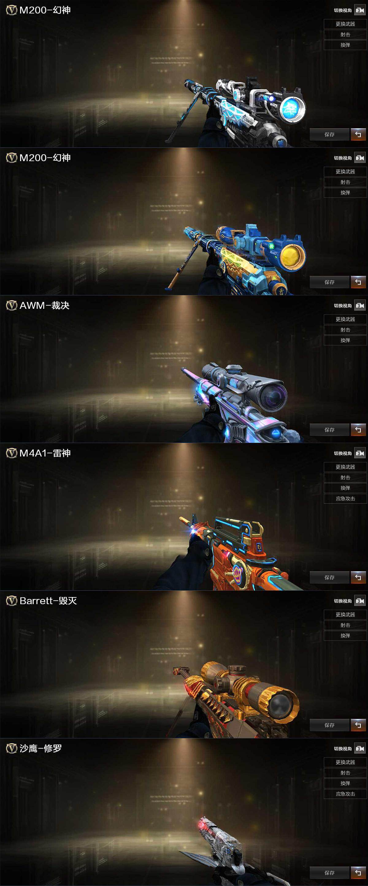 【音效卡】:M200-幻神音效卡,M4A1-黑骑士音效卡,Barrett-极光音效卡