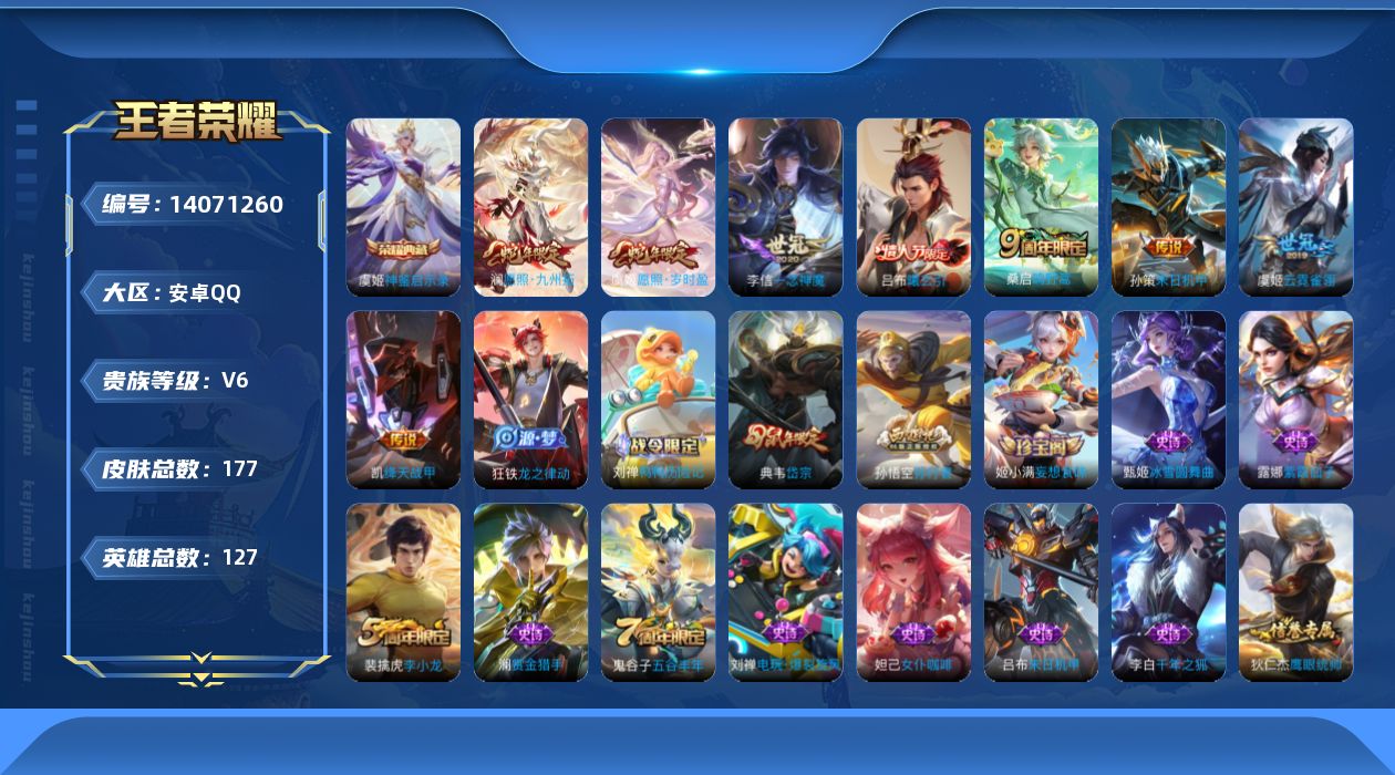 [14071260]【店主推荐捡漏号!可直接换绑】安卓Q-V6-最强王者段位-127英雄-177皮肤-1典藏-9传说-42史诗