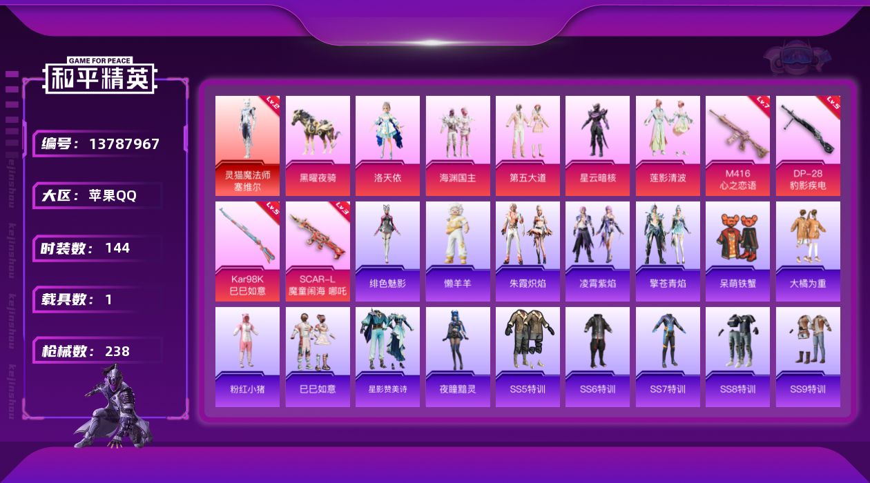 [13787967]可二次【店主推荐捡漏号!可直接换绑】璀璨碎片938苹果 手Q-1神装-5粉装-4特效枪-1载具-5粉色飞行器-73568热力值-9王牌印记-144套装-238枪皮【红色神装等级】:灵猫魔法师-塞维尔(二级)【红色角色神装】:灵猫魔法师-塞维尔【热门品类】:套装-粉红小猪【粉色载具】:黑曜夜骑【粉色套装】:角色-洛天依,粉装-海渊国主,粉装-第五大道,角色-星云暗核,粉装-莲影清波【粉色枪皮等级】:SCAR-L-魔童闹海 哪吒(三级),M416-心之恋语(七级),Kar98K-巳巳如意(五级),DP-28-豹影疾电(五级)【粉色枪皮】:SCAR-L-魔童闹海 哪吒,M416-心之恋语,Kar98K-巳巳如意,DP-28-豹影疾电【粉色飞行器】:风花雪月飞行器,拂晓神骑飞行器,灵猫魔法师飞行器,飞天猪飞行器,灵珠游龙飞行器