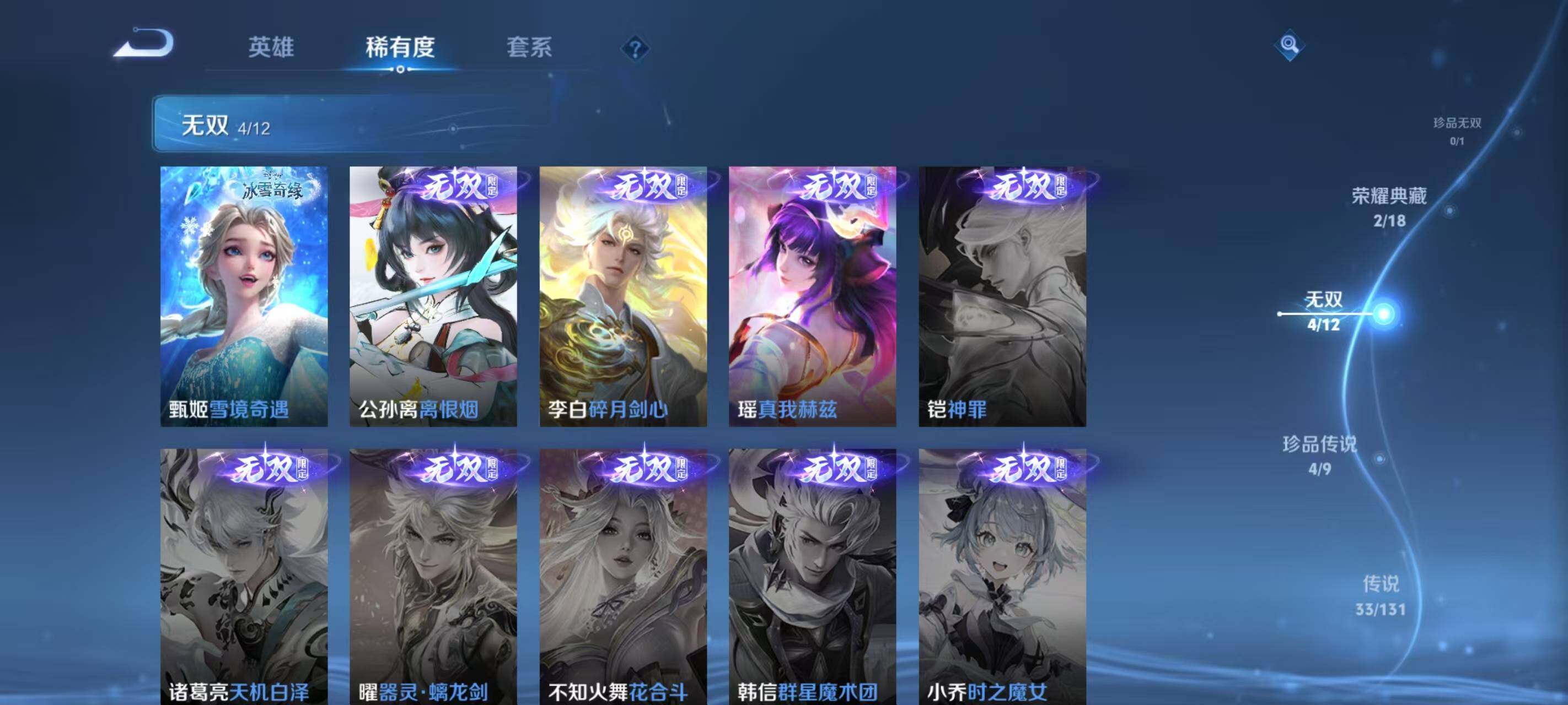 [14957983]雪镜奇遇天幕 2传说天幕 安卓Q-469皮肤-2典藏皮肤-1典藏英雄-4无双-4珍品传说-33传说-151史诗
