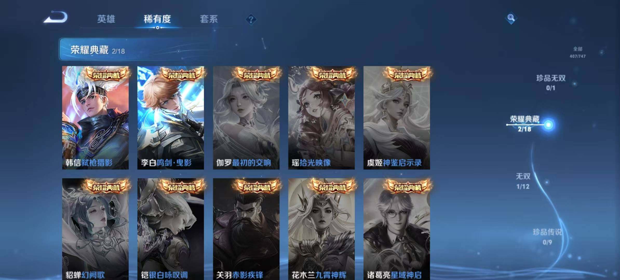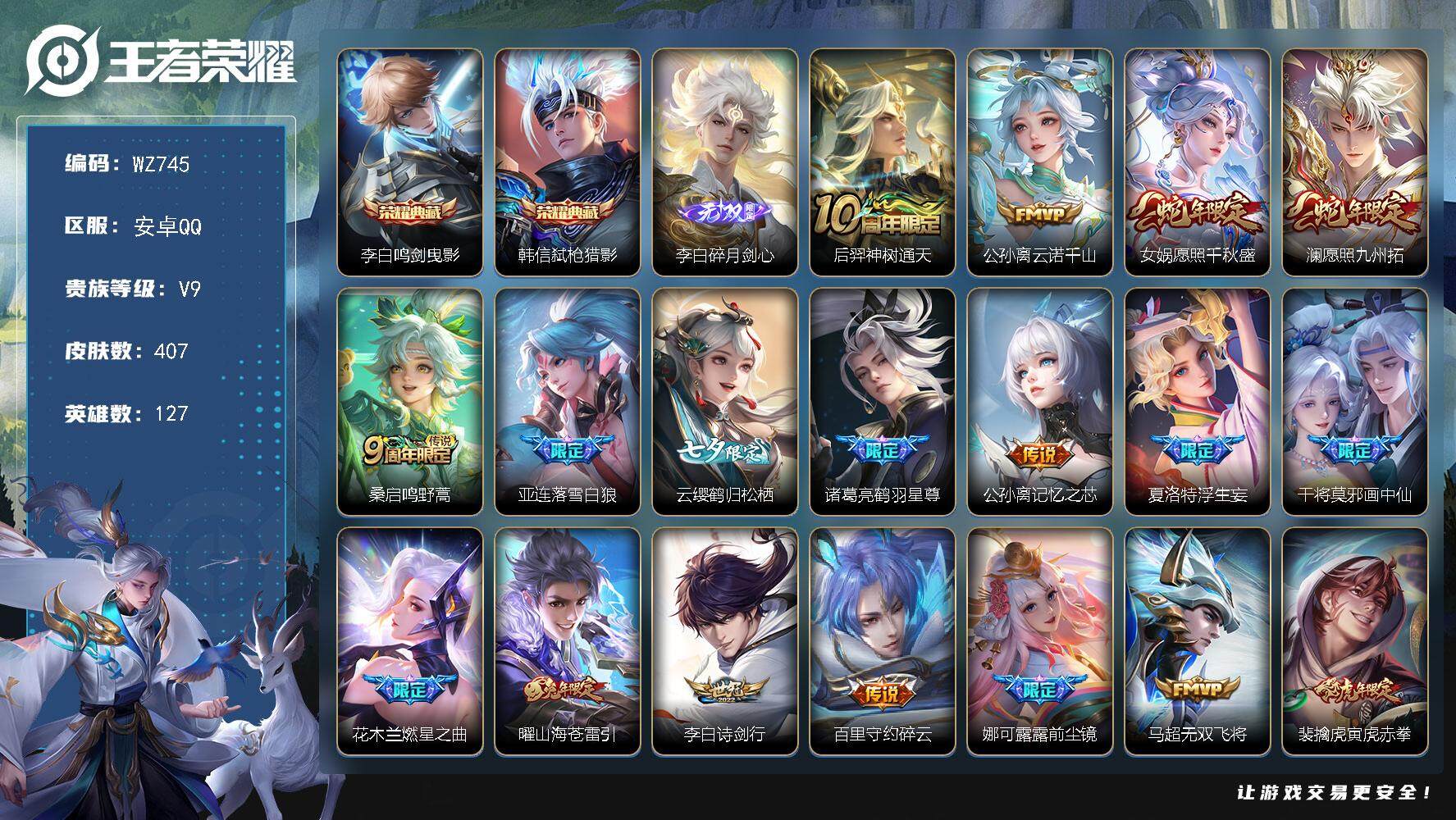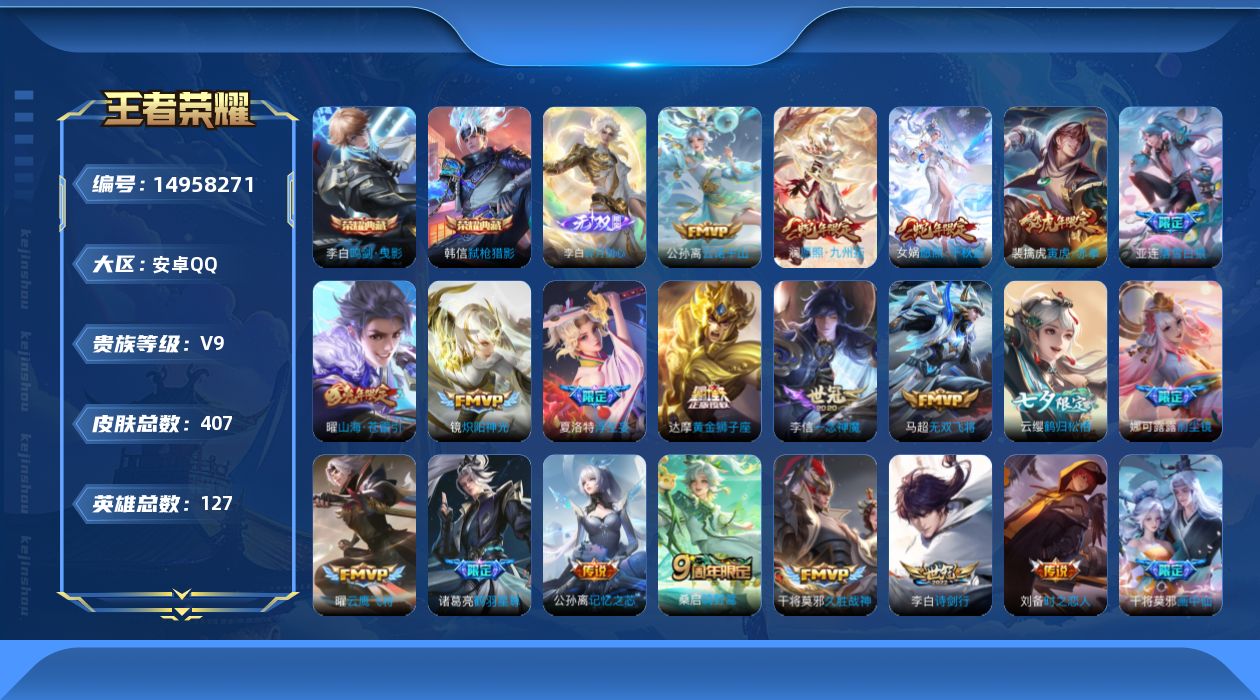 [14958271]安卓Q-407皮肤-2典藏皮肤-1无双-29传说-125史诗