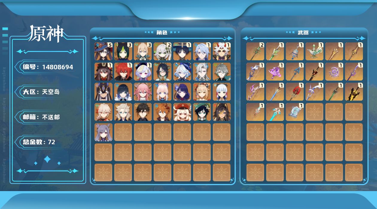 [14808694]60级/72黄/女主/29个五星角色/23个五星武器
