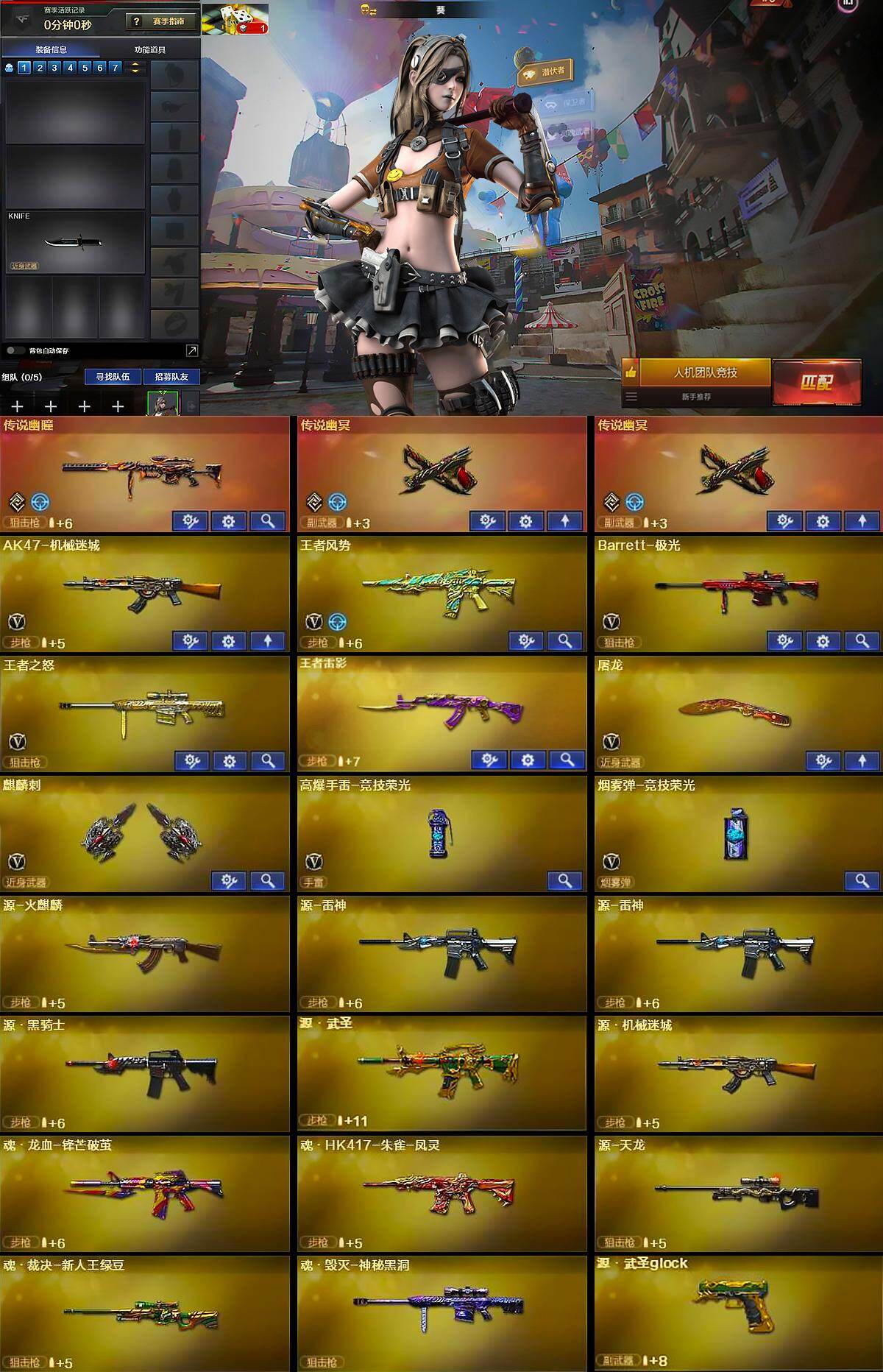 【英雄级武器】:AK47-机械迷城,王者风势-觉醒版,Barrett-极光,王者之怒-觉醒版,屠龙,麒麟刺,高爆手雷-竞技荣光,烟雾弹-竞技荣光