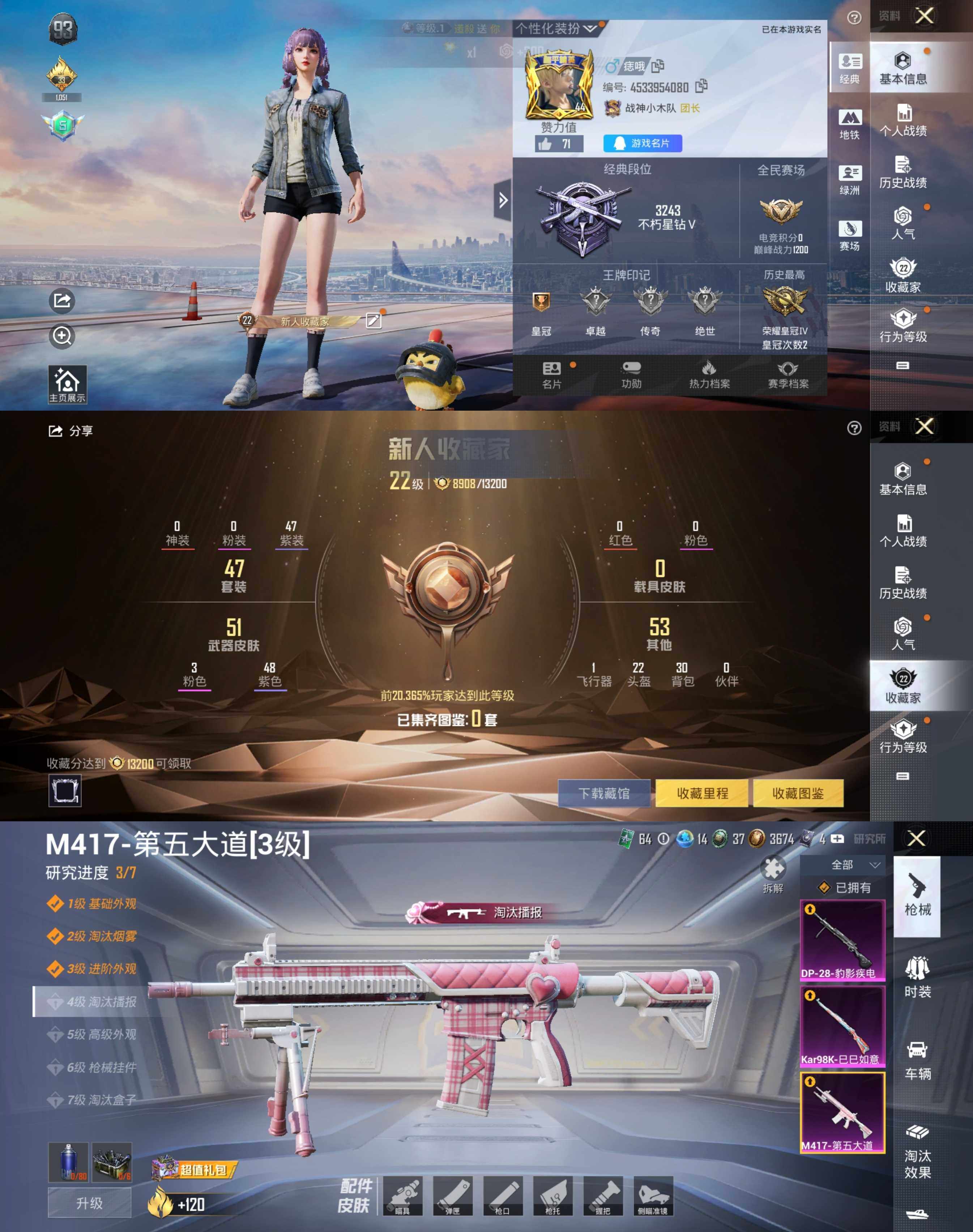 【粉色枪皮等级】:Kar98K-巳巳如意(四级),M417-第五大道(三级),DP-28-豹影疾电(五级)