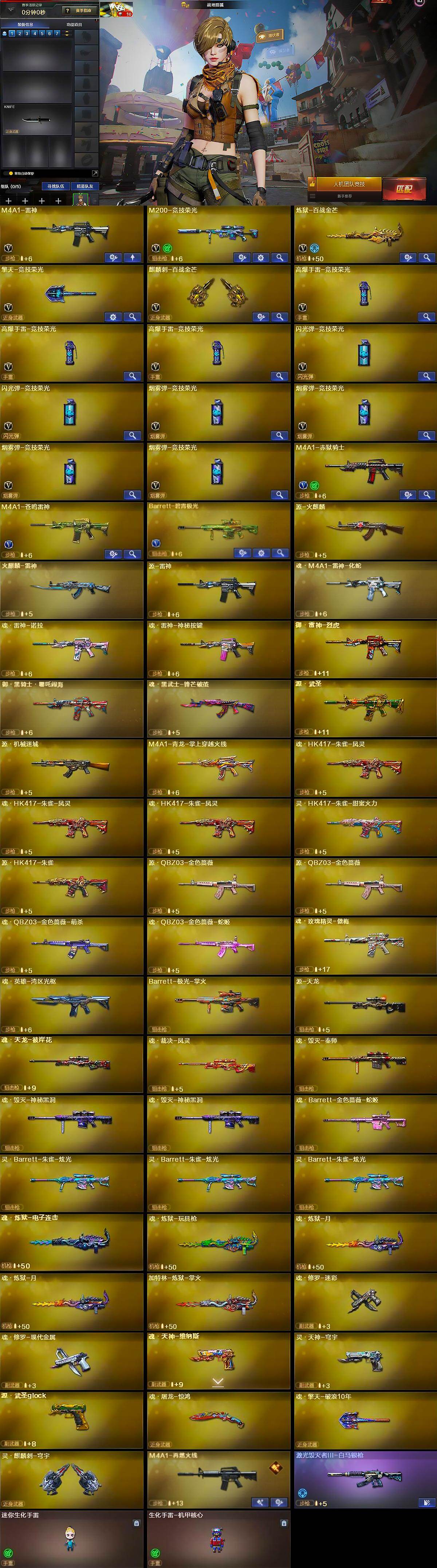【英雄级武器】:M4A1-雷神,M200-竞技荣光,炼狱-百战金芒,擎天-竞技荣光,麒麟刺-百战金芒,高爆手雷-竞技荣光*3,闪光弹-竞技荣光*2,烟雾弹-竞技荣光*4,M4A1-赤狱骑士,M4A1-苍鸣雷神,Barrett-碧霄极光