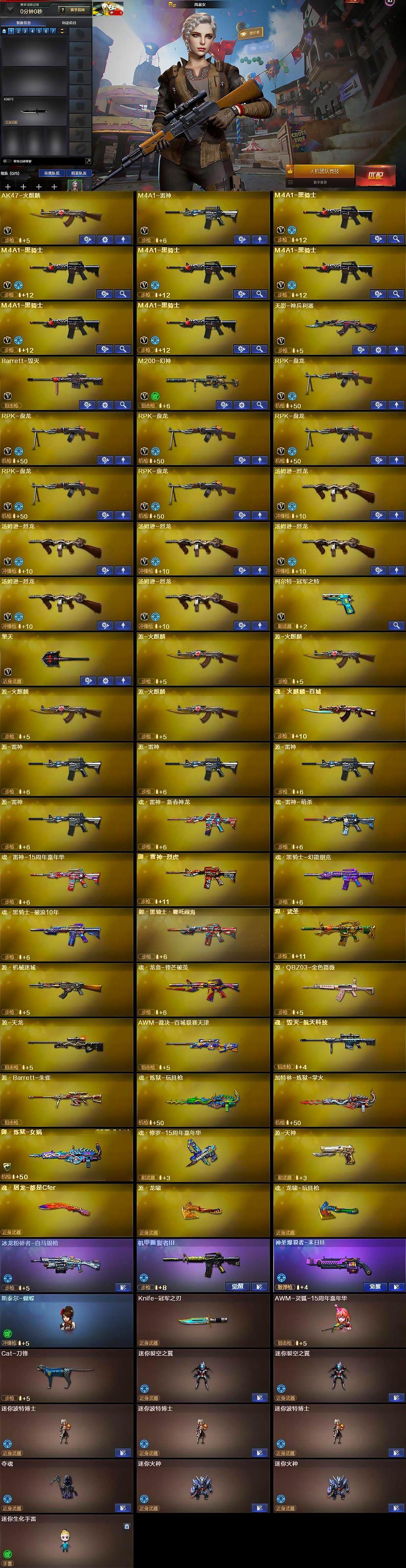 - [14990304]云南一区-53V-10王者-0炫金 【热门武器】:QBZ03-金色蔷薇,Scar Light-白虎,M4A1-青龙,M200-幻神,金色蔷薇-古蛇迷踪,修罗-古蛇迷踪,M200-竞技荣光,八面凌龙,死亡之眼*3,M4A1-黑骑士,羊驼玩偶,沙鹰-修罗 【王者炫金武器】:王者之怒,王者蔷薇,王者之魄高爆手雷,王者之魄闪光弹*2 【音效卡】:M4A1-黑骑士音效卡,Barrett-极光音效卡 【皮肤】:幻神-星耀 皮肤,幻神-曹操 皮肤,M4A1-再燃火线,毁灭-暗月,毁灭-星耀 皮肤,黑骑士-暗月,天罚-孙权 皮肤,极光-能量核心,炼狱-星空,屠龙-春桃 皮肤,轻型军用手斧-再燃火线 【角色】:葵,炫,电竞教官-云悠悠,王者春,蛇隐宗,乔伊教练,修道士,初恋灵狐,风暴女,嘉年华灵狐,娟娟,青霞仙子,蛇姬,斯沃特-X 【人偶武器】:加特林-机械猎手,AWM-灵狐-15周年嘉年华,迷你生化手雷 【暴走生化】:死亡之眼*3 【挑战大师】:冰龙粉碎者-白马银枪*2,神圣爆裂者-末日III 【英雄级武器】:M4A1-千变,AK47-火麒麟*2,M4A1-黑龙,M4A1-雷神,M4A1-黑骑士,AK47-无影,AK47-黑武士,M4A1-青龙,Scar Light-白虎,无影-神兵利器,八面凌龙,金色蔷薇-古蛇迷踪,QBZ03-金色蔷薇,AWM-天龙,Barrett-毁灭,Barrett-极光,M200-幻神,M200-竞技荣光,王者之光-觉醒版,王者之决-觉醒版,沙鹰-修罗,沙鹰-天神*3,王者之魂-觉醒版,修罗-古蛇迷踪,屠龙,擎天,麒麟刺*3,麒麟刺-百战金芒,王者之锋-觉醒版,高爆手雷-雷霆*4,高爆手雷-雷暴,高爆手雷-幻灵,高爆手雷-竞技荣光,高爆手雷-古蛇迷踪,闪光弹-雷霆*4,闪光弹-雷暴,闪光弹-竞技荣光,烟雾弹-雷霆*4,烟雾弹-古蛇迷踪 【道具】:CFS限定背包,古蛇迷踪炫彩背包,炫彩背包,百战金芒炫彩背包,超级背包,女皇终结者-魔龙之吻,绿色巨人,灵魂忍者,迷雾幽灵,夺命之镰,防化服*3,金色流光-枪王排位*2,星辰流光-枪王排位,枪王排位28赛季金色流光,枪王排位29赛季金色流光,古蛇迷踪打击特效,蛇隐宗表情,萌萌小葵表情,EP战队名片,EP战队喷图,防弹头盔*4,防弹衣*4,C4工具钳*4,手雷包*4 【特殊枪械】:1白虎,1黑骑士