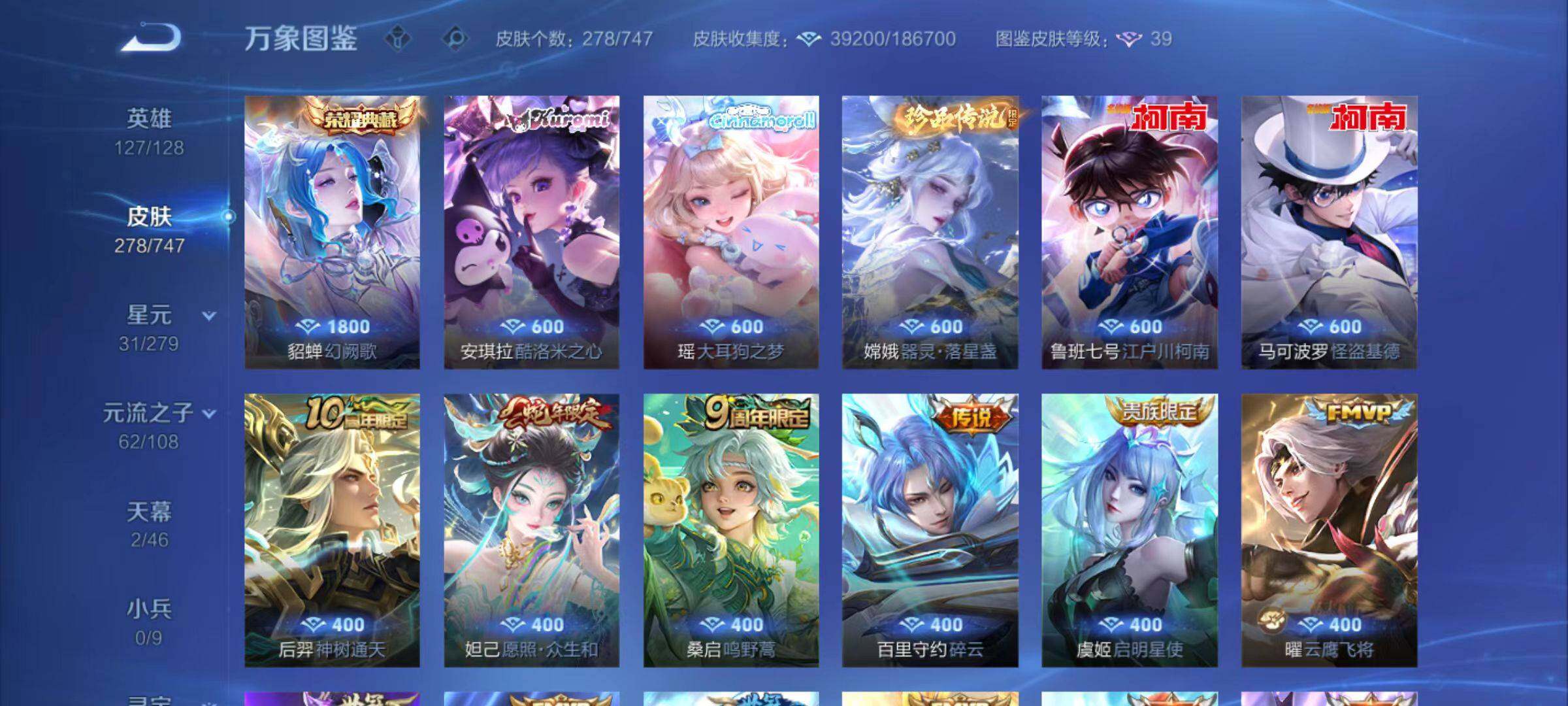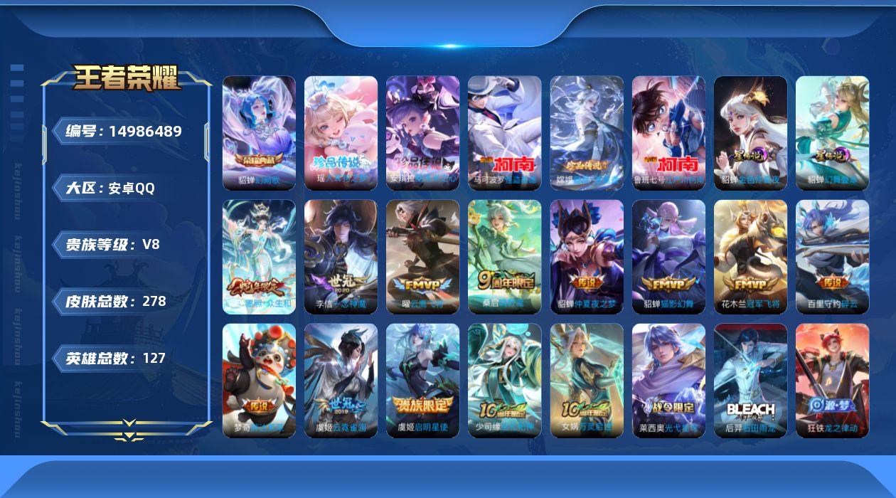[14986489]安卓Q-278皮肤-1典藏皮肤-5珍品传说-12传说-68史诗
