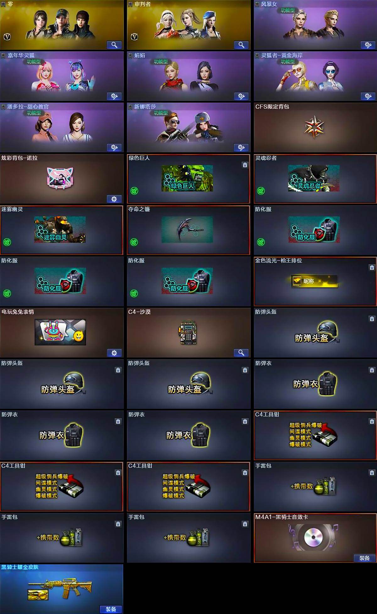 【热门武器】:Scar Light-白虎,金色小号,M4A1-黑骑士,沙鹰-修罗,金刚伞*2