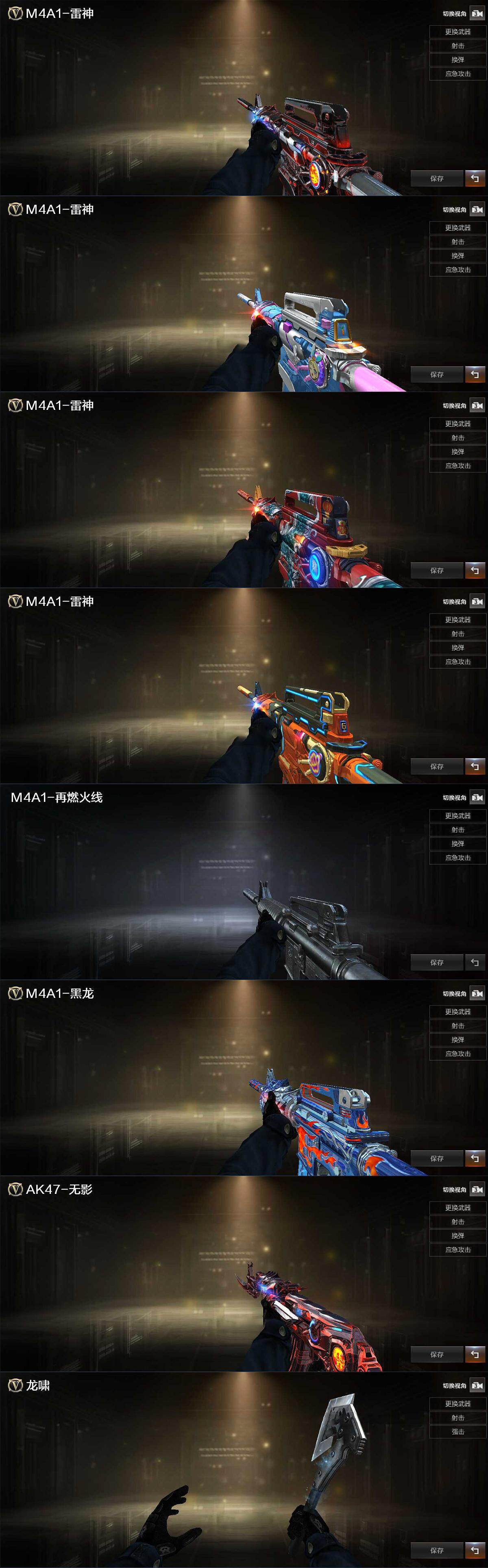 【皮肤】:雷神-暗月,雷神-宇航兔皮肤,M4A1-雷神-新春神龙皮肤,雷神-源计划2.0专属 皮肤,M4A1-再燃火线,黑龙-能量核心,无影-暗月,轻型军用手斧-再燃火线