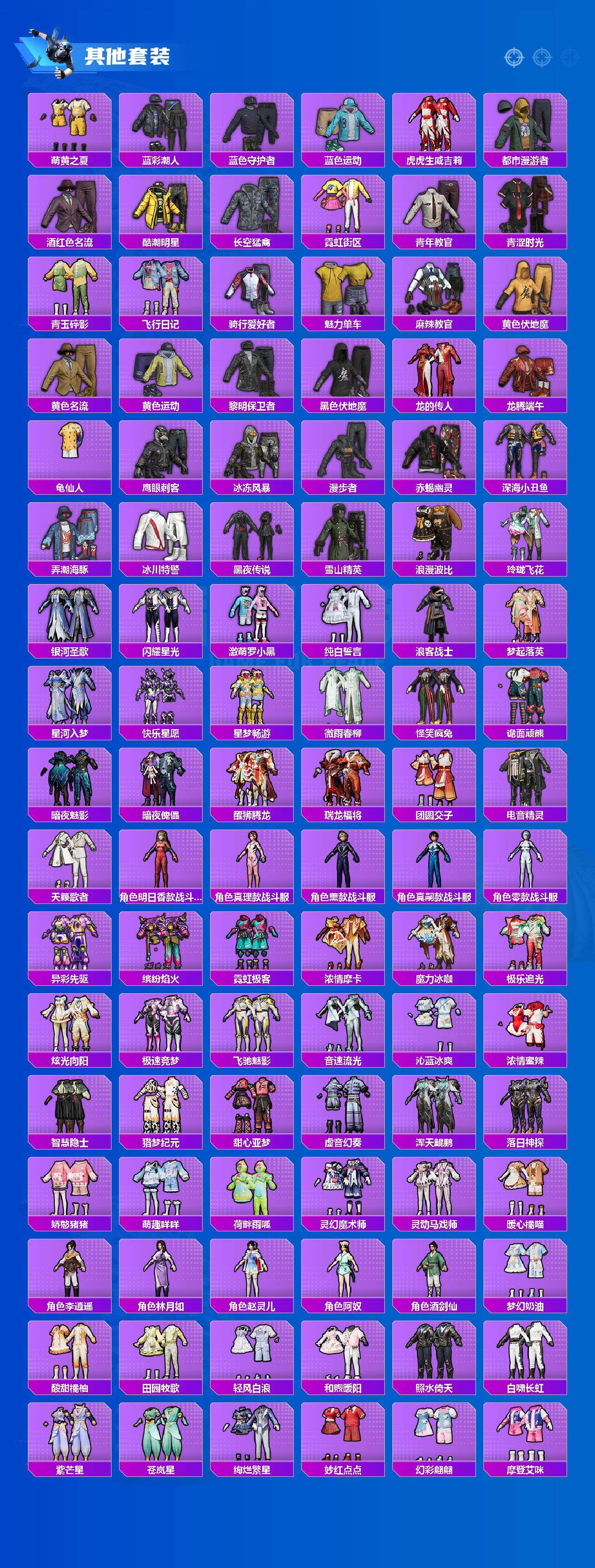【粉色套装】:粉装-甜心巧克力,粉装-宝贝奶油派,粉装-天使彩虹糖,粉装-蝶舞迷情,粉装-梦幻火箭,粉装-缤纷油彩,粉装-放客神游,粉装-新星烈龙,粉装-绚金战神,粉装-星之彼岸,粉装-馨动时刻,粉装-炙焰赤龙,角色-洛天依,粉装-沙场疾风,角色-零号机款机体服,角色-初号机款机体服,角色-2号机款机体服,粉装-海盐物语,粉装-橘柚倾心,粉装-紫电风暴,粉装-筑梦精灵,粉装-圣光天使,粉装-闪光银龙,蜀山剑侠-李逍遥,粉装-千面幻镜,粉装-旋转彩虹,粉装-冰川幽秘,粉装-寒光使者,粉装-青空秋雨,粉装-启明星,角色-歌者泠鸢,粉装-暗夜鎏金,粉装-心之回忆,超级赛亚人-孙悟空,粉装-天星战神,角色-阿尔茜,粉装-炫光之旅,粉装-巨渊蟹踪,粉装-天幕蝎影,粉装-双星鱼跃,粉装-勇猛狮王,粉装-射星猎手,粉装-无畏白羊,粉装-银瓶流水,粉装-双面双生,粉装-天衡星秤,粉装-神隐金牛,粉装-室女星神,粉装-牧神之羯,角色-宙之时溯,角色-星云暗核,粉装-莲影清波,粉装-傲傲奶龙,角色-圣堂之誓,角色-小叽联名款,粉装-繁龙极客,角色-严莉莉,角色-小蓝,角色-美雪,角色-美琪,角色-光极星,角色-狂花道·不知火舞