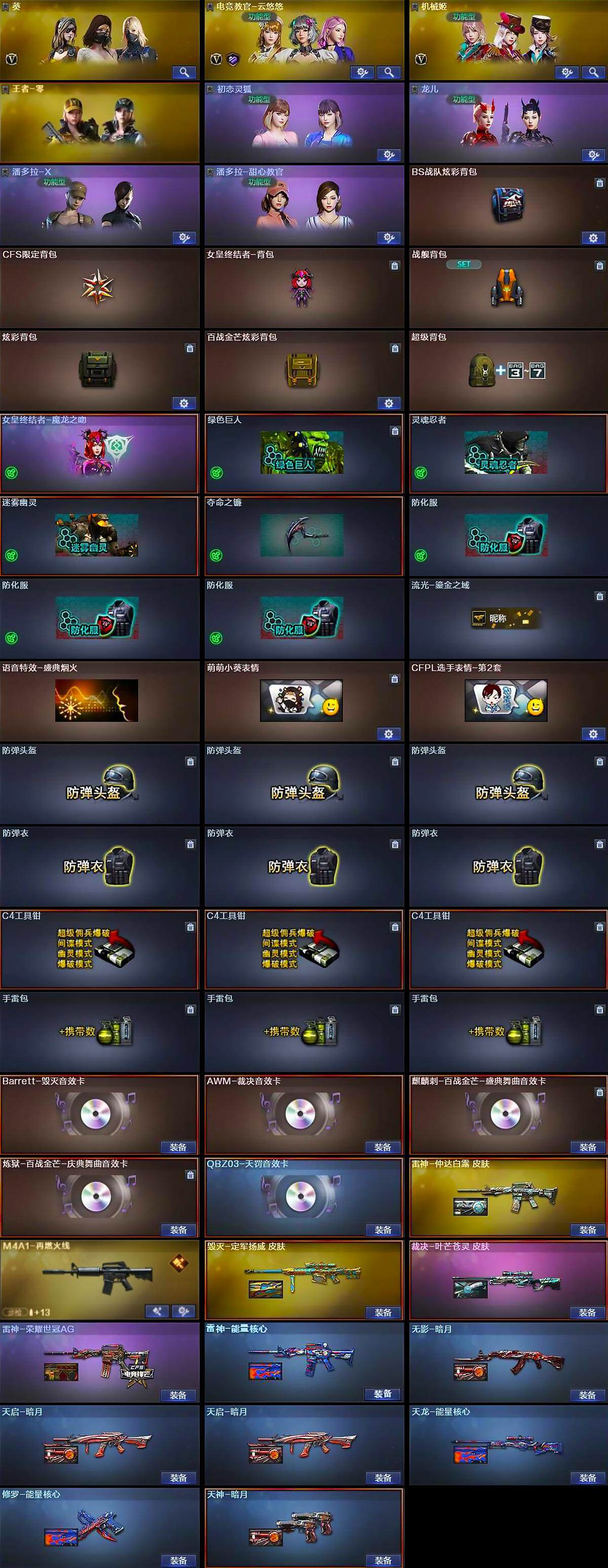 - [14968603]陕西一区-30V-2王者-0炫金 【热门武器】:G36C-幻影,M200-幻神,修罗-古蛇迷踪,死亡之眼,白虎-电玩蓝兔,毒蜂,汤姆逊-烈龙,加特林-炼狱,沙鹰-修罗 【音效卡】:烈火-动感闪耀 音效卡,M4A1-雷神音效卡,Barrett-毁灭音效卡,Barrett-碧霄极光音效卡*3,死神-雪域霜狐-怀旧音效卡 【皮肤】:幻神-电流骇客 皮肤,雷神-暗月,雷神-荣耀之魄,雷神-源计划2.0专属 皮肤,火麒麟-雷神,毁灭-暗月,毁灭-荣耀之怒,毁灭-百城浙江 皮肤,毁灭-英雄计划 皮肤,天启-暗月,战神-紫绶金章皮肤,AK47-B-常胜将军-曹操,修罗-能量核心,天神-暗月,屠龙-荣耀之锋,龙啸-冠军之啸 【角色】:零,王者-魅影,雪域霜狐,蛇隐宗,奇洋探员,乔伊教练,暗夜-X,初恋灵狐,电竞少女,芳心审判者,飞虎队-X,虎妞,嘉年华灵狐,娟娟,灵狐者-X,龙儿,曼陀罗-X,玫瑰花神,潘多拉-X,潘多拉-甜心教官,青霞仙子,蛇姬,斯沃特-X,兔囡囡,雪莉杨,雪莉杨-摸金校尉,影武者-X,游珑儿 【人偶武器】:AWM-灵狐-15周年嘉年华,迷你牛牛,生化手雷-机甲核心*5,迷你艾比 【暴走生化】:毒蜂,死亡之眼,超级对讲机 【挑战大师】:激光毁灭者III-白马银枪,神圣爆裂者-末日III 【英雄级武器】:M4A1-雷神*2,AK47-无影,AK12-天启,无影-神兵利器,G36C-幻影,黑武士-锦绣游龙,超新星-热带奇洋,死神-雪域霜狐,烈火-动感闪耀,AK-47-猩红传说,AK47-B-战神,AK47-B-常胜将军,白虎-电玩蓝兔,AWM-天龙,Barrett-毁灭,M200-幻神,加特林-炼狱,汤姆逊-烈龙,沙鹰-修罗,天神-动感闪耀,修罗-古蛇迷踪,屠龙,龙啸,擎天,屠龙-动感闪耀,龙啸-热带奇洋,手雷-动感闪耀,手雷-热带奇洋,高爆手雷-古蛇迷踪,烟雾弹-古蛇迷踪,M4A1-赤狱骑士,Barrett-碧霄极光 【道具】:CFS限定背包,云山科技背包,亚洲杯纪念炫彩背包,全能枪王背包,古蛇迷踪炫彩背包,炫彩背包,热带奇洋炫彩背包,超级背包,雪域霜狐炫彩背包,女皇终结者-魔龙之吻,救世主-黑桃战神,黄金生化钩,绿色巨人,灵魂忍者,变异宝贝,迷雾幽灵,生化弹匣,夺命之镰,防化服*3,金色流光-枪王排位*2,星辰流光-枪王排位,流光-再燃火线,枪王排位28赛季金色