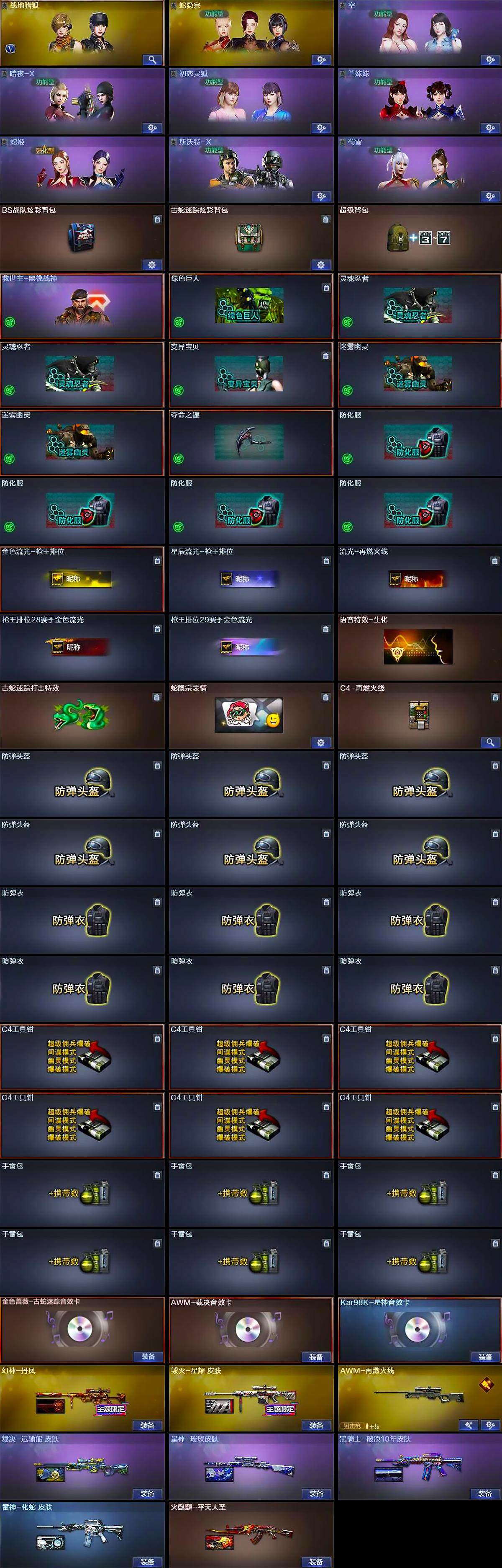 - [14759967]江苏一区-22V-3王者-0炫金 【热门武器】:M200-幻神,柯尔特-冠军之特,炼狱-迷你小钢,M4A1-黑骑士*2,沙鹰-修罗*2,黄金猫猫手套-白鲨 【音效卡】:绝迹语音包 【皮肤】:M200-幻神-黄忠皮肤,M4A1-战神赵云,火麒麟-平天大圣,火麒麟-心动糖果,毁灭-星空,毁灭-冠军之怒,毁灭-战神张飞,毁灭-风暴*2,M4A1-千变-孔明皮肤,黑骑士-冠军之势,黑武士-典韦皮肤,天启-暗月,AWM-天龙-传奇70KG,极光-能量核心 【角色】:关小雨,狐影,乔伊教练,修道士,芳心审判者,风暴女,嘉年华灵狐,娟娟,零-热舞青春,灵狐者-X,灵狐者-七夕宝贝,龙儿-小淘气,麻雀,曼陀罗-X,曼陀罗-礼服,潘多拉-X,潘多拉-甜心教官,斯沃特-X,铁骑荣耀,兔囡囡,雪莉杨-摸金校尉,夜玫瑰-幻能朋克,樱-战斗天使,职业选手 【人偶武器】:炼狱-迷你小钢,AWM-灵狐-15周年嘉年华,迷你裂空之翼*2,迷你生化手雷 【暴走生化】:双面神 【挑战大师】:神圣爆裂者III,VEPR-12-金魔,机甲撕裂者III,神圣爆裂者-末日III,阐释者III 【英雄级武器】:AK47-火麒麟*3,M4A1-雷神,M4A1-黑骑士*2,无影-神兵利器,王者之烈-觉醒版,Barrett-毁灭*3,Barrett-极光,M200-幻神,炼狱-风暴,悦蓝-惊涛骇浪-觉醒版,沙鹰-修罗*2,柯尔特-冠军之特,天神-动感闪耀,屠龙,擎天,屠龙-动感闪耀,手雷-动感闪耀 【道具】:EDG炫彩背包,炫彩背包,背包-洛丽塔,超级背包,救世主-黑桃战神,绿色巨人,灵魂忍者,迷雾幽灵,生化弹匣,夺命之镰,防化服*2,金色流光-枪王排位*2,星辰流光-枪王排位,枪王排位28赛季金色流光,C4-沙漠,防弹头盔*4,防弹衣*4,C4工具钳*4,手雷包*4 【特殊枪械】:2黑骑士