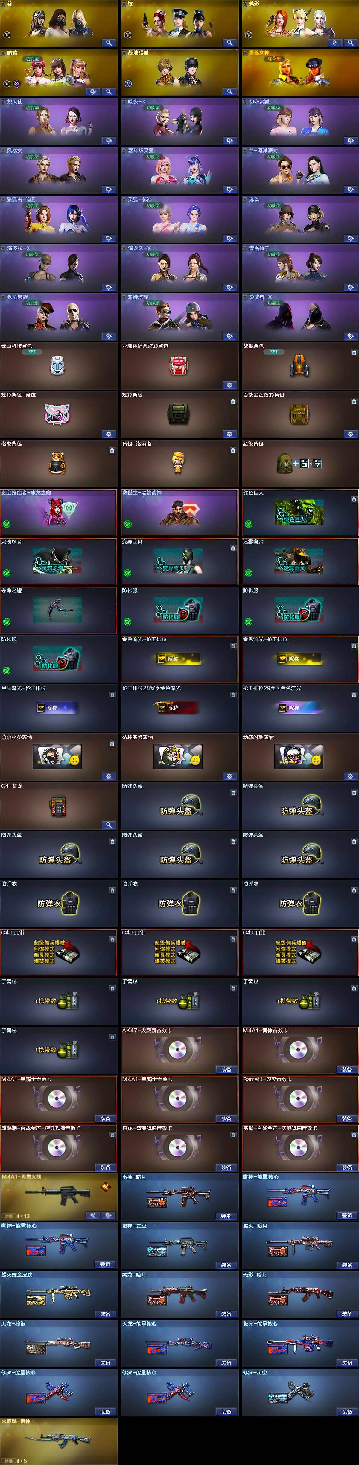 - [13489921]湖北一区-85V-4王者-1炫金 【热门武器】:QBZ03-金色蔷薇,Scar Light-白虎,HK417-朱雀,M200-竞技荣光,死亡之眼,荣耀世冠-雷神,荣耀世冠-柯尔特,牛牛-AK47,M4A1-黑骑士,汤姆逊-烈龙*5,RPK-盘龙*7,加特林-炼狱*3,USP-雷暴,沙鹰-修罗*2 【王者炫金武器】:炫金骑士 【音效卡】:AK47-火麒麟音效卡 【稀有皮肤】:雷神-星空,火麒麟-心动糖果,黑骑士-暗月,黑骑士-地狱火,毁灭-黑大圣皮肤,无影耀金皮肤,AWM-CFS 2020,修罗-星空 【角色】:电竞教官-云悠悠,零,葵,迷迭香,铁骑荣耀 【人偶武器】:AWM-灵狐-15周年嘉年华,牛牛-AK47,迷你深渊冰龙,迷你艾比,迷你巨石泰坦-魔花研究所,迷你牛魔王,迷你波特博士,夺魂,迷你牛牛,生化手雷-机甲核心*2,深渊终结者手雷,闪光弹-小乔,闪光弹-貂蝉 【暴走生化】:死亡之眼,超级对讲机 【挑战大师】:机甲撕裂者III,神圣爆裂者-末日III*2,KAC-圣炎切割者III,激光毁灭者III*2,冰龙粉碎者-白马银枪 【英雄级武器】:M200-竞技荣光,柯尔特-竞技荣光,擎天-竞技荣光,高爆手雷-竞技荣光*4,烟雾弹-竞技荣光*4,闪光弹-竞技荣光*5,USP-雷暴,荣耀世冠-雷神,荣耀世冠-柯尔特,QBZ03-金色蔷薇,Scar Light-白虎,HK417-朱雀,无影-神兵利器,M4A1-雷神*2,M4A1-黑龙,M4A1-黑骑士,M4A1-死神,RPK-盘龙*7,加特林-炼狱*3,汤姆逊-烈龙*5,AK47-无影,AK47-火麒麟*2,AK12-天启,AN94-超新星,Barrett-毁灭,AWM-裁决,黑武士-锦绣游龙,黑骑士-海王*2,AK47-B-常胜将军,沙鹰-天神*7,沙鹰-修罗*2,麒麟刺,擎天*2,龙啸,屠龙*4 【特殊枪械】:1白虎,1黑骑士,5烈龙,6盘龙,3炼狱,0蝴蝶斯泰尔