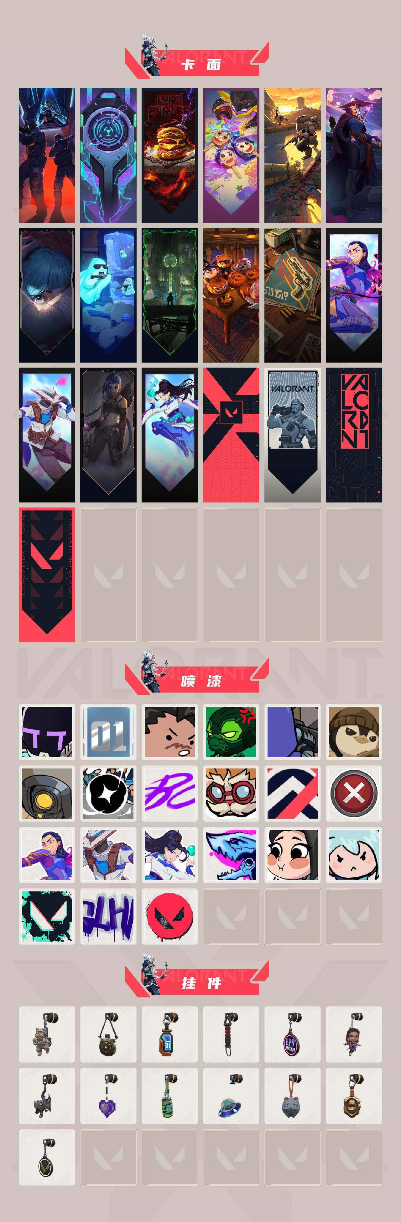 【喷漆】:请求重启 喷漆,纳米打击 喷漆,简笔画黯兽 喷漆,独守蝰腹 喷漆,他们将落荒而逃 喷漆,通缉:战术企鹅 喷漆,荒土机兵 喷漆,别挡我吃球! 喷漆,嘭! 喷漆,都算到了 喷漆,控场勿近 喷漆,买装还是存钱 喷漆,无畏契约GO!第一卷:芮娜 喷漆,无畏契约GO!第一卷:零 喷漆,无畏契约GO!第一卷:贤者 喷漆,暴走萝莉 喷漆,辣得好下饭 喷漆,飓刃涂鸦 喷漆 ,胜利属于无畏契约 喷漆,GLHF 喷漆,无畏契约 喷漆