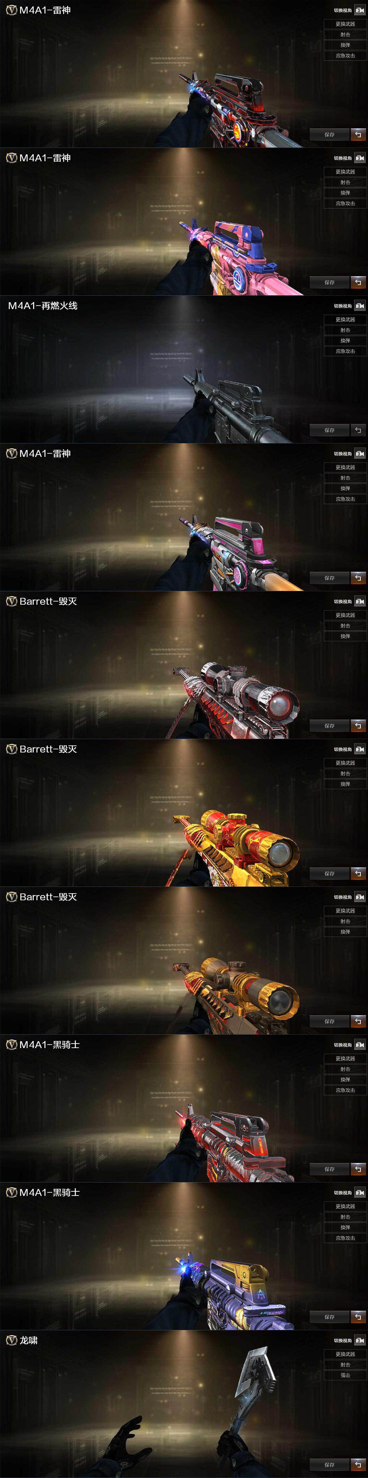 【热门武器】:传说灵眸,金色蔷薇-古蛇迷踪,修罗-古蛇迷踪,M4A1-黑骑士,沙鹰-修罗*3