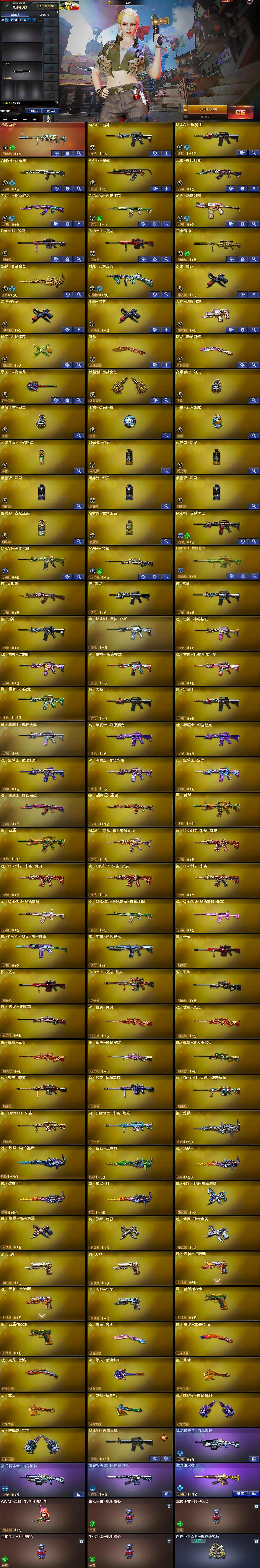 【英雄级武器】:M4A1-雷神,M4A1-黑骑士,AN94-超新星,AK47-黑鲨,无影-神兵利器,黑武士-锦绣游龙,金色蔷薇-古蛇迷踪,烈火-动感闪耀,Barrett-毁灭,Barrett-极光,王者风神-觉醒版,炼狱-百战金芒,烈龙-云海游龙,沙鹰-修罗*3,天神-动感闪耀,修罗-古蛇迷踪,屠龙,屠龙-动感闪耀,擎天-云海游龙,麒麟刺-百战金芒,高爆手雷-幻灵*2,手雷-动感闪耀,手雷-云海游龙,高爆手雷-古蛇迷踪,闪光弹-幻灵*2,烟雾弹-幻灵*3,烟雾弹-古蛇迷踪,烟雾弹-雷霆王者-觉醒版,M4A1-赤狱骑士,M4A1-苍鸣雷神,AWM-昌龙,Barrett-碧霄极光