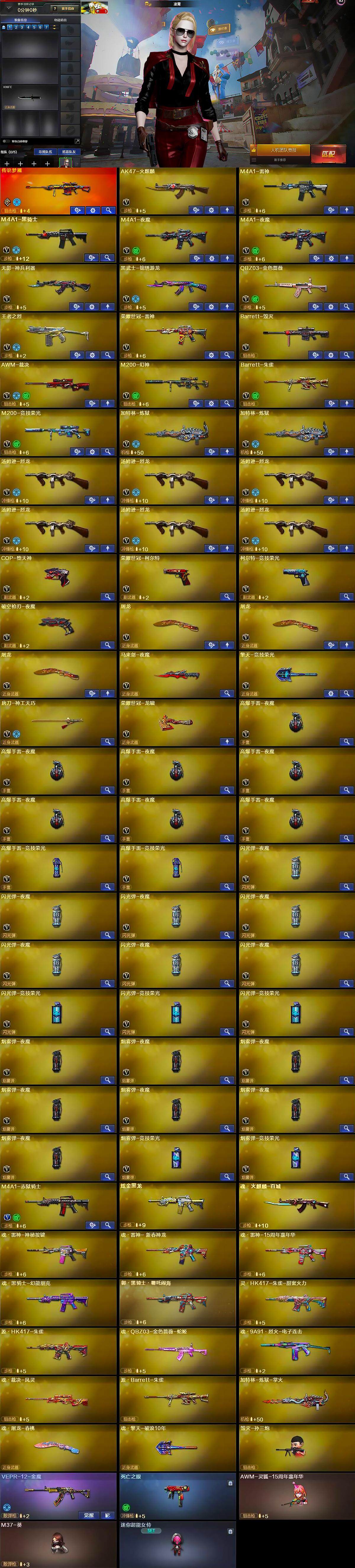 - [10401659]实名: 可修改 时装数: 291 载具数: 1 枪械数: 122 战备数: 78 神级装扮: 幽焰骑士-维塔 热门装扮: 烟云彩露,超弦星,创世·救赎,智耀战神,星穹咏叹调,狂魅哈莉 载具: 护世瑞兽 稀有枪皮: M762-电糖天使,M416电玩时刻,GROZA-精灵之光,Kar98K-巳巳如意,SCAR-L金蛇镇世,AUG-圣斗士星矢,MG3-辉羽雀灵