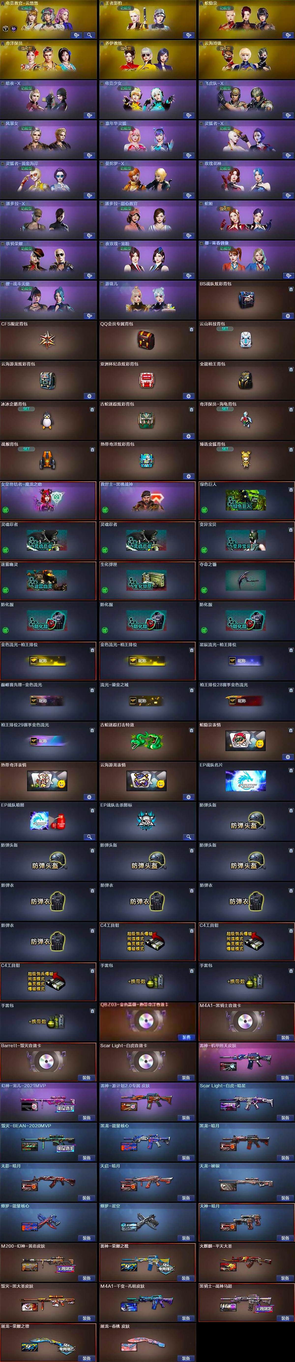 - [15600768]黑龙江区-63V-9王者-2炫金 【热门武器】:QBZ03-金色蔷薇,Scar Light-白虎,M200-幻神,M200-竞技荣光,死亡之眼,荣耀世冠-雷神,M4A1-黑骑士,羊驼玩偶,雷神-小红,沙鹰-修罗,金刚伞 【王者炫金武器】:王者冰魄,炫金骑士,炫金武士 【音效卡】:M4A1-黑骑士音效卡,Barrett-毁灭音效卡 【皮肤】:M200-幻神-黄忠皮肤,幻神-周瑜皮肤,QBZ03-AG-CFPLS19冠军,雷神-暗月,M4A1-雷神-CFS 2019,雷神-宇航兔皮肤,雷神-维纳斯皮肤,火麒麟-轻羽皮肤,火麒麟-平天大圣,火麒麟-荣耀世冠AG,火麒麟-心动糖果,毁灭-星空,毁灭-黑大圣皮肤,黑武士-典韦皮肤,战神-粉色甜心皮肤*2,战神-紫绶金章皮肤,AK47-B-常胜将军-曹操,AK47-B-常胜将军-刘备,AK47-B-常胜将军-孙权,修罗-能量核心,屠龙-荣耀之锋 【角色】:王者-葵-貂蝉,乔伊教练,暗夜-X,电竞少女,芳心审判者,飞虎队-X,嘉年华灵狐,0号玩家,灵狐者-X,龙儿,龙儿-小淘气,曼陀罗-X,潘多拉-X,潘多拉-甜心教官,邱刚敖,青霞仙子,蛇姬,斯沃特-X,维纳斯,雪莉杨-摸金校尉,职业选手 【人偶武器】:雷神-小红,AWM-灵狐-15周年嘉年华,M37-葵,迷你深渊冰龙,夺魂,迷你牛牛,深渊终结者手雷,闪光弹-小乔,闪光弹-貂蝉,高爆手雷-大乔,迷你艾比,迷你超能女侍,迷你巨石泰坦-魔花研究所 【暴走生化】:死亡之眼 【挑战大师】:激光毁灭者III-白马银枪,神圣爆裂者-末日III,阐释者III 【英雄级武器】:AK47-火麒麟*2,M4A1-雷神,M4A1-黑骑士,AK47-黑武士,AK12-天启,Scar Light-白虎,无影-神兵利器,黑武士-锦绣游龙,QBZ03-金色蔷薇,烈火-动感闪耀,AK-47-猩红传说,AK47-B-战神,黑骑士-海王,AK47-B-常胜将军,M4A1-雷霆王者-觉醒版,荣耀世冠-雷神,Barrett-毁灭,Barrett-极光,M200-幻神,M200-竞技荣光,AA-12-雷霆,沙鹰-修罗,沙鹰-天神*2,柯尔特-竞技荣光*2,天神-动感闪耀,屠龙*2,龙啸*3,麒麟刺-堕天神,马来剑-夜魔,擎天,麒麟刺,屠龙-动感闪耀,王者之啸-觉醒版,王者之击-觉醒版,雷霆王者之锋-觉醒版,高爆手雷-堕