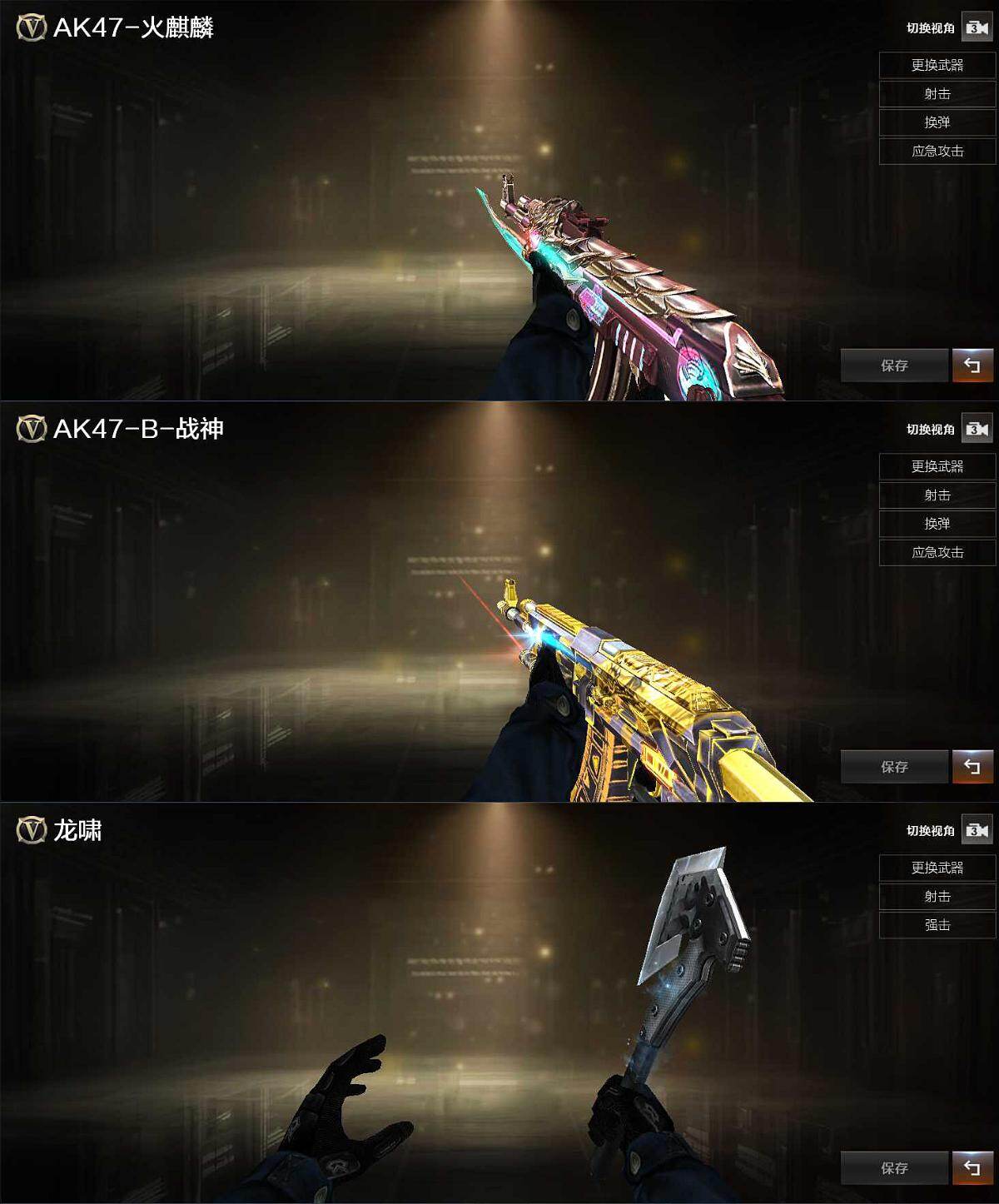 【皮肤】:火麒麟-百城,战神-流金岁月皮肤,屠龙-春桃 皮肤,轻型军用手斧-再燃火线