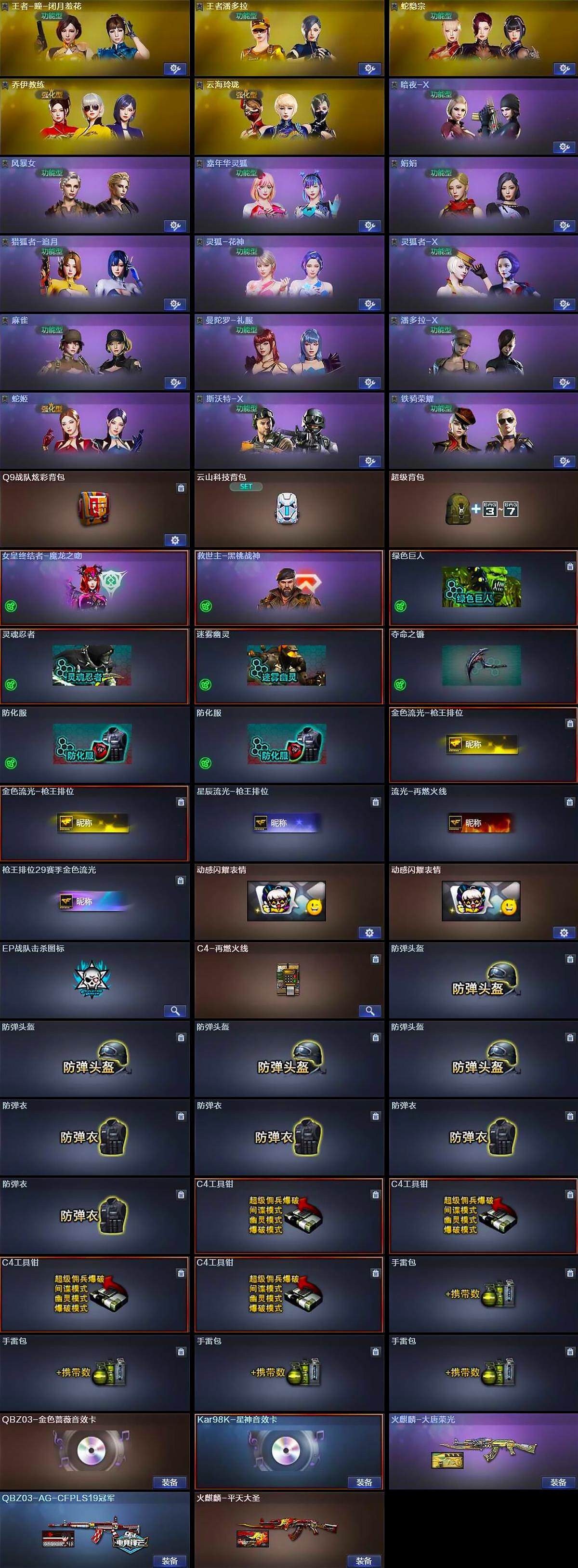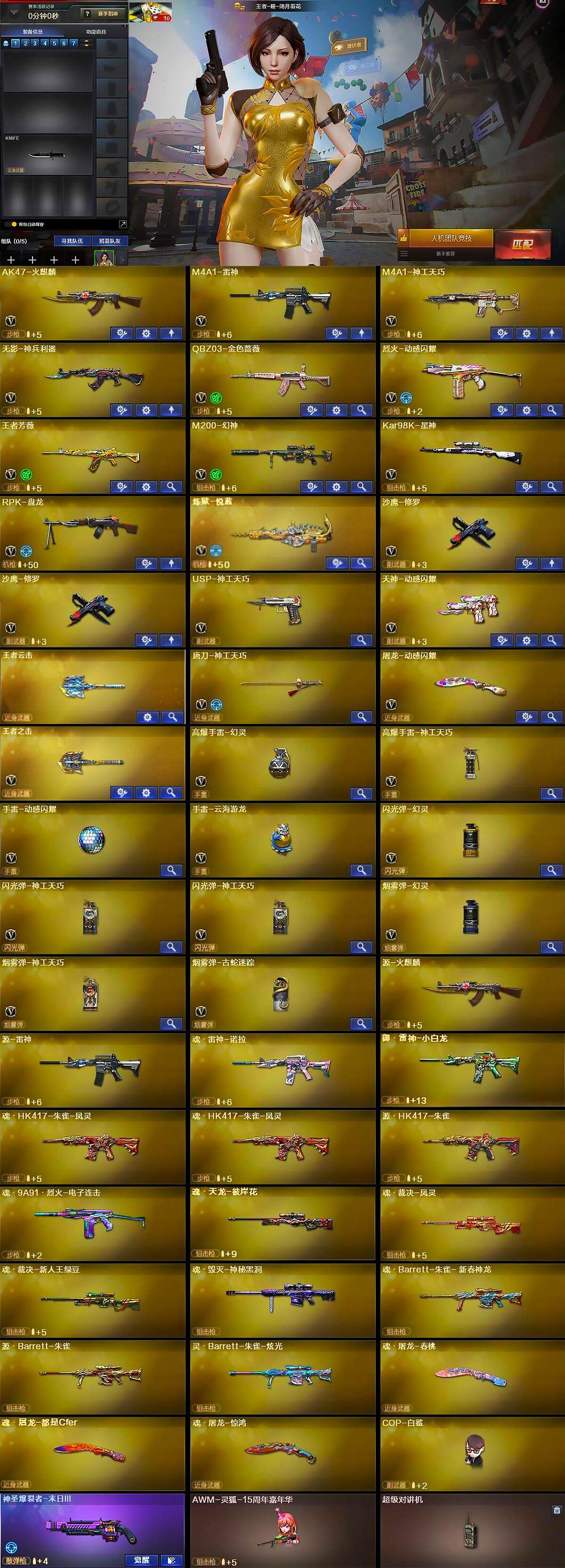 - [12647547]陕西一区-14V-0王者-0炫金 【传说武器】:传说幽瞳 【热门武器】:传说幽瞳,修罗-古蛇迷踪 【角色】:瞳 【英雄级武器】:M4A1-雷神,M4A1-赤狱骑士,修罗-古蛇迷踪,沙鹰-天神*5,麒麟刺*3,屠龙 【特殊枪械】: