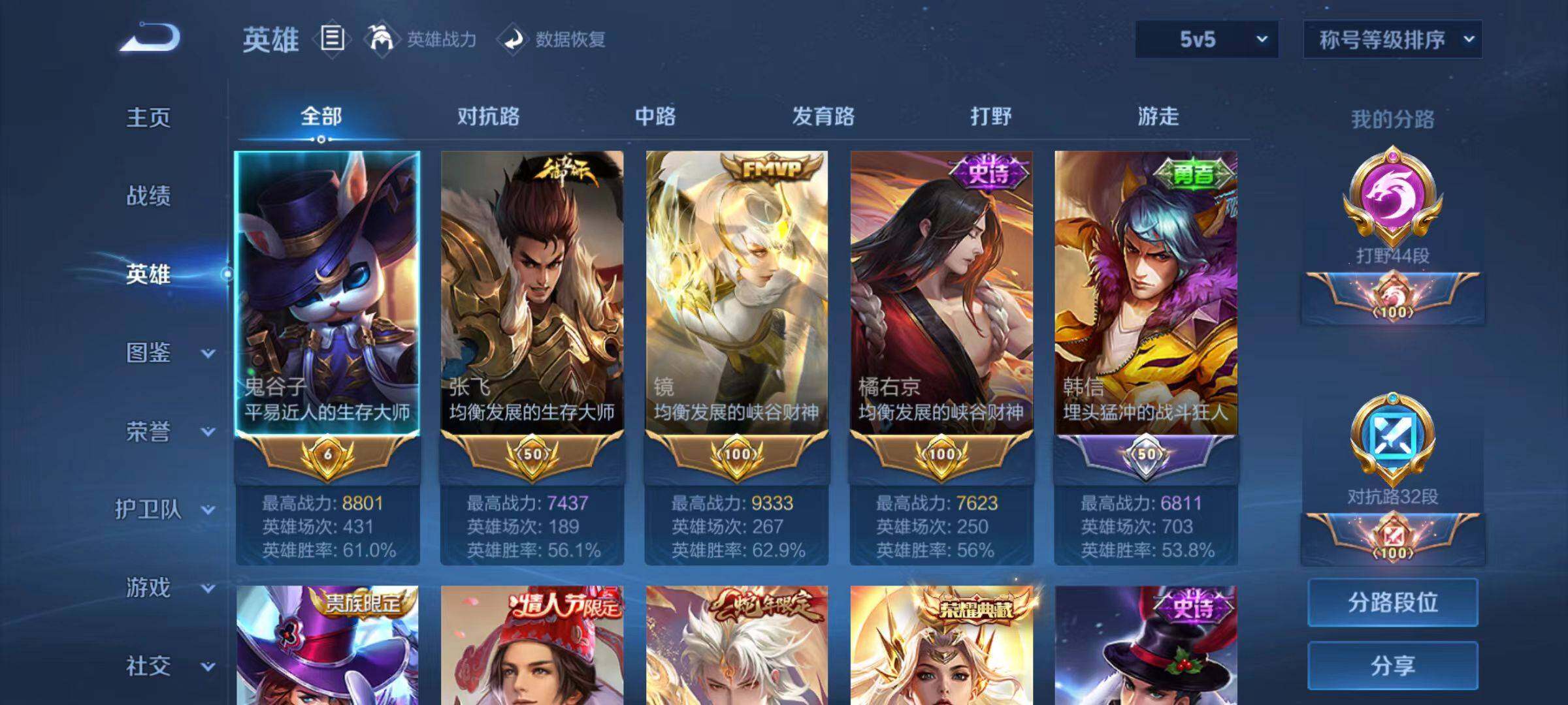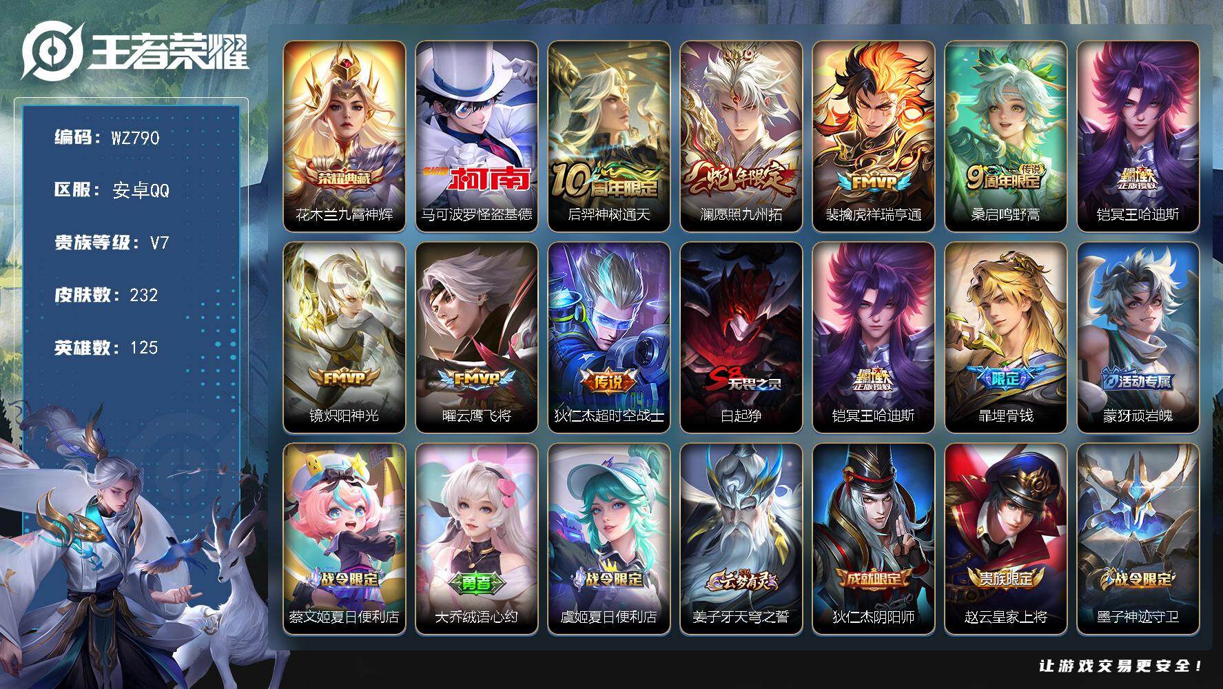 [15044525]安卓Q-V7-最强王者段位-125英雄-232皮肤-1典藏皮肤-1珍品传说-8传说-60史诗