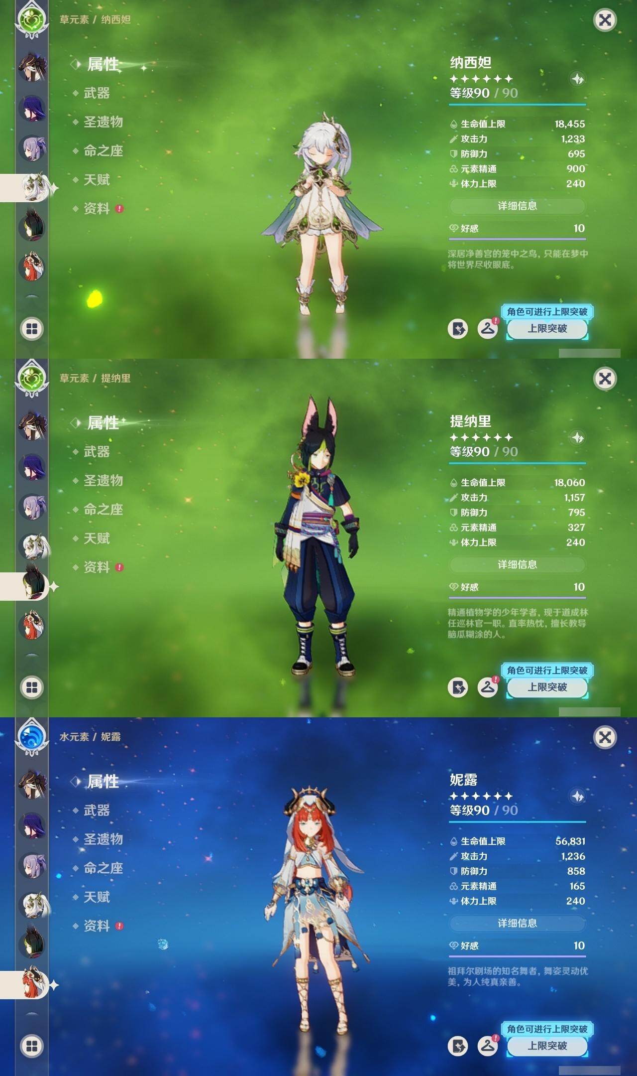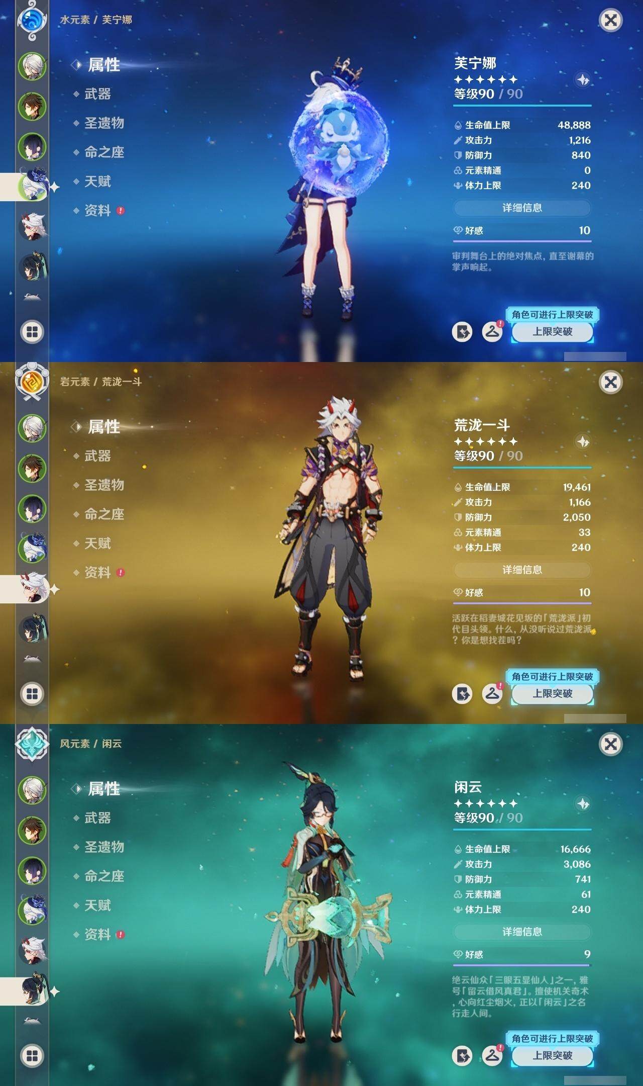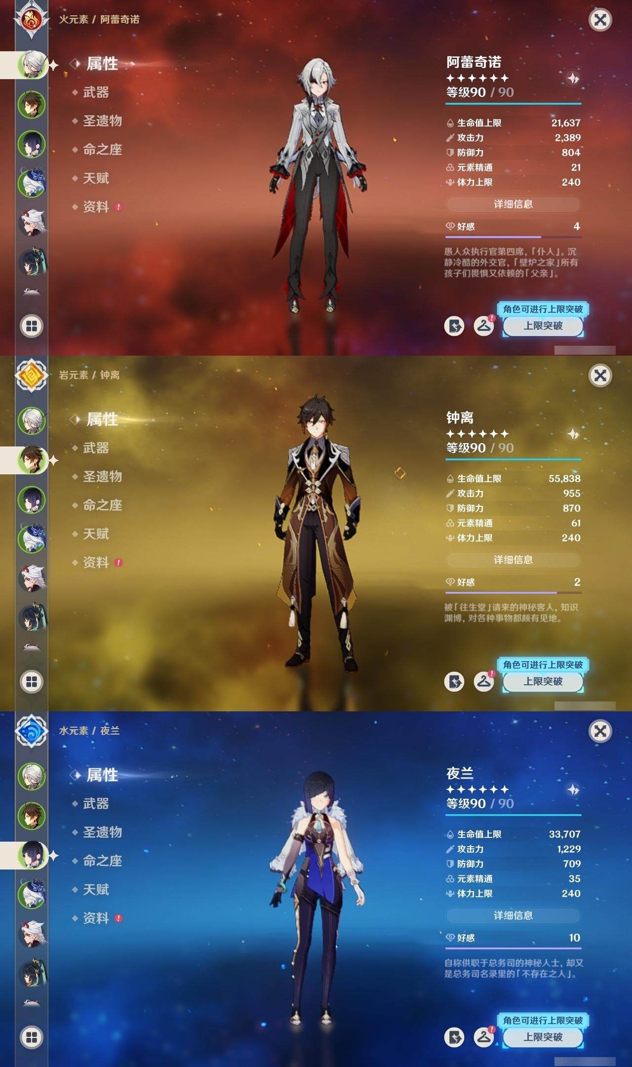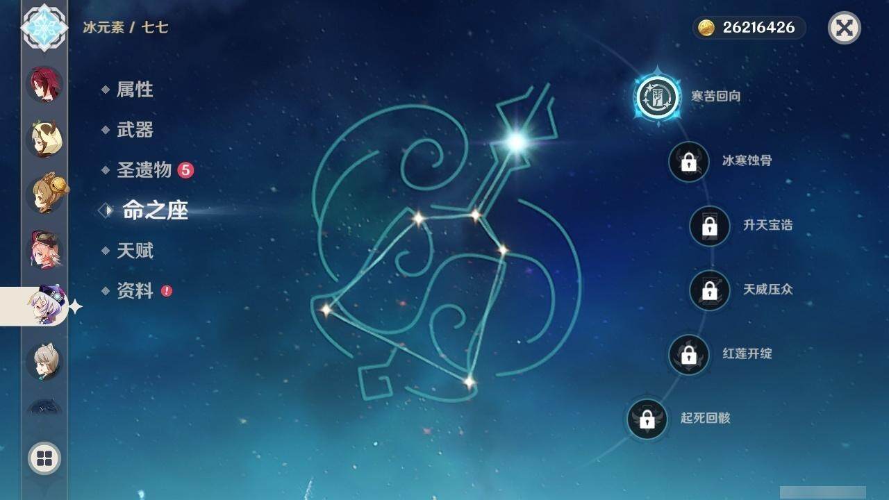 0命阿蕾奇诺,0命闲云,1命芙宁娜,0命纳西妲,0命妮露,0命赛诺,3命提纳里,0命夜兰,0命神里绫人,0命荒泷一斗,0命优菈,0命雷电将军,0命枫原万叶,0命神里绫华,0命钟离,0命胡桃,0命珊瑚宫心海,4命刻晴,1命七七,1命琴,3命莫娜,0命迪卢克,精1千夜浮梦,精1波乱月白经津,精1薙草之稻光,精1雾切之回光,精1四风原典,精1天空之翼,精2天空之刃