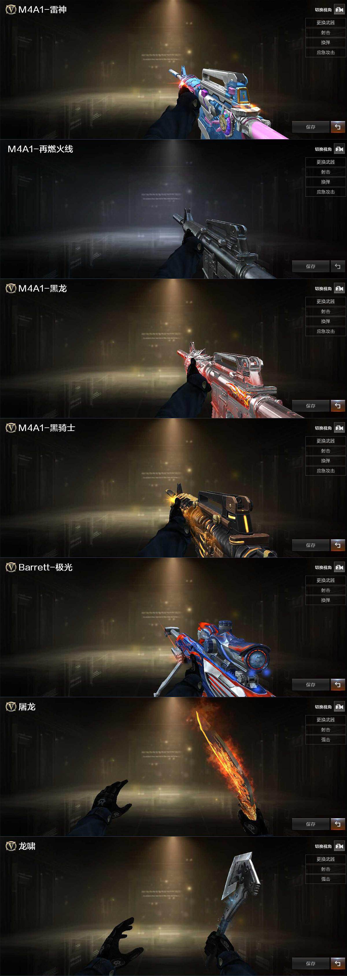 【音效卡】:修罗-云海游龙音效卡,擎天-云海游龙音效卡,Barrett-极光音效卡,炼狱-百战金芒-庆典舞曲音效卡,死神-雪域霜狐-怀旧音效卡,COP 357-雪域霜狐-怀旧音效卡
