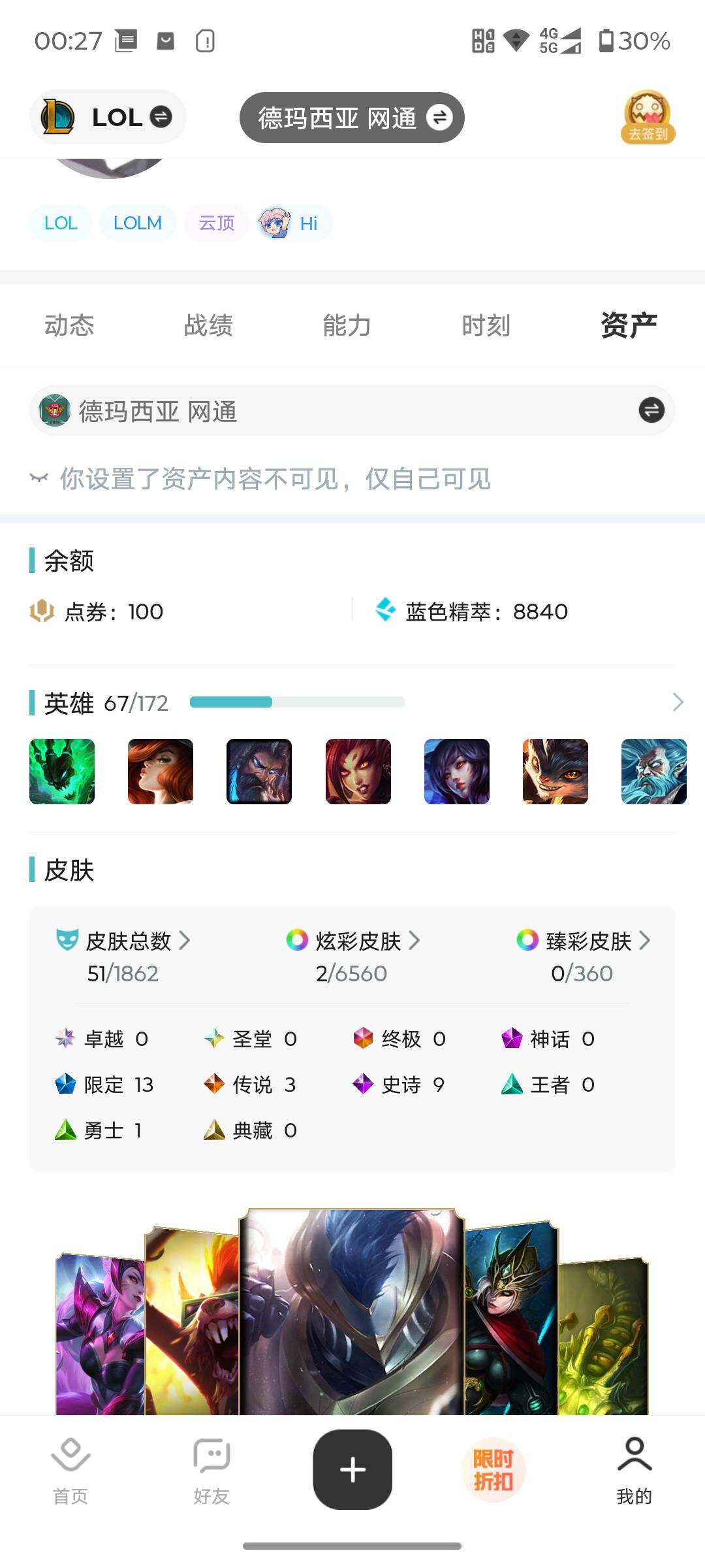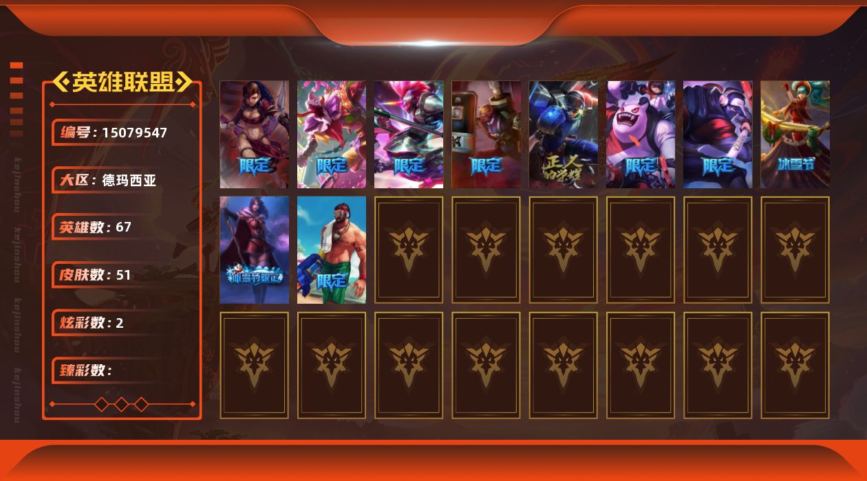 [15079547]【店主推荐捡漏号!可直接换绑】未定级段位-67英雄-51皮肤-2炫彩-0终极-0神话-13限定-3传说-9史诗
