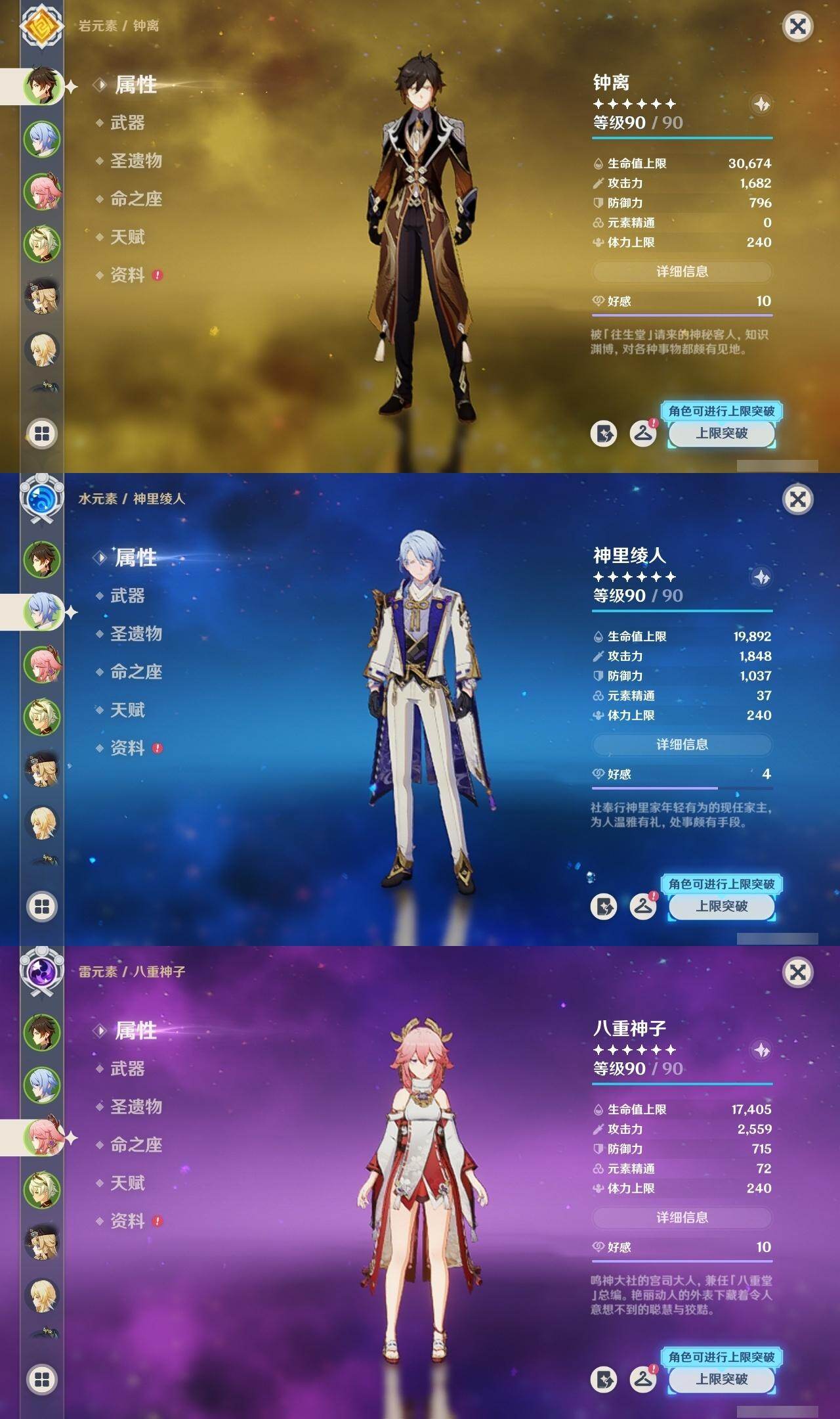 钟离,八重神子,枫原万叶,魈,温迪,申鹤,神里凌华,雷电将军,刻晴,珊瑚宫心海,胡桃,迪卢克,阿贝多,琴,莫娜,七七