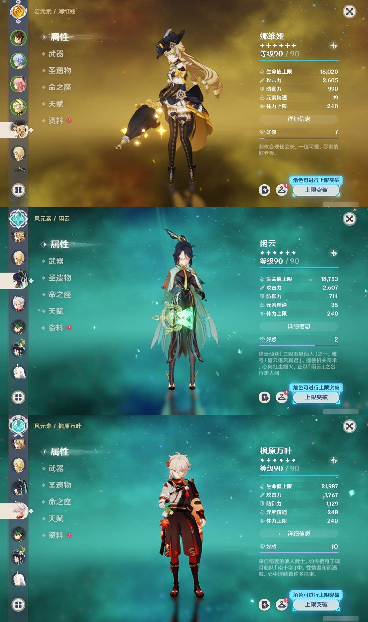 [15079533]60级/49黄/女主/22个五星角色/19个五星武器 0命闲云,0命娜维娅,0命迪希雅,0命艾尔海森,0命纳西妲,0命神里绫人,0命八重神子,0命申鹤,0命雷电将军,0命枫原万叶,1命神里绫华,0命钟离,0命胡桃,0命魈,0命温迪,0命阿贝多,0命珊瑚宫心海,0命刻晴,1命七七,1命琴,2命莫娜,3命迪卢克,精1鹤鸣余音,精1千夜浮梦,精1波乱月白经津,精1不灭月华,精1雾切之回光,精1无工之剑,精1护摩之杖,精1磐岩结绿,精1和璞鸢,精1阿莫斯之弓,精1天空之卷,精1狼的末路,精1天空之傲