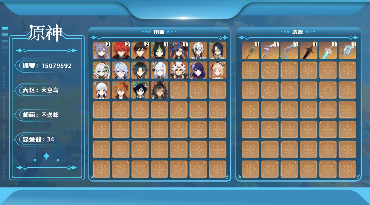 [15079592]59级/34黄/男主/18个五星角色/6个五星武器