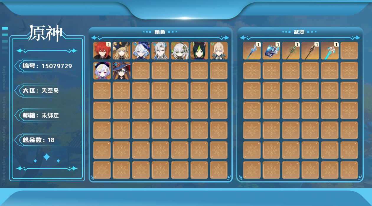 [15079729]57级/18黄/男主/11个五星角色/6个五星武器