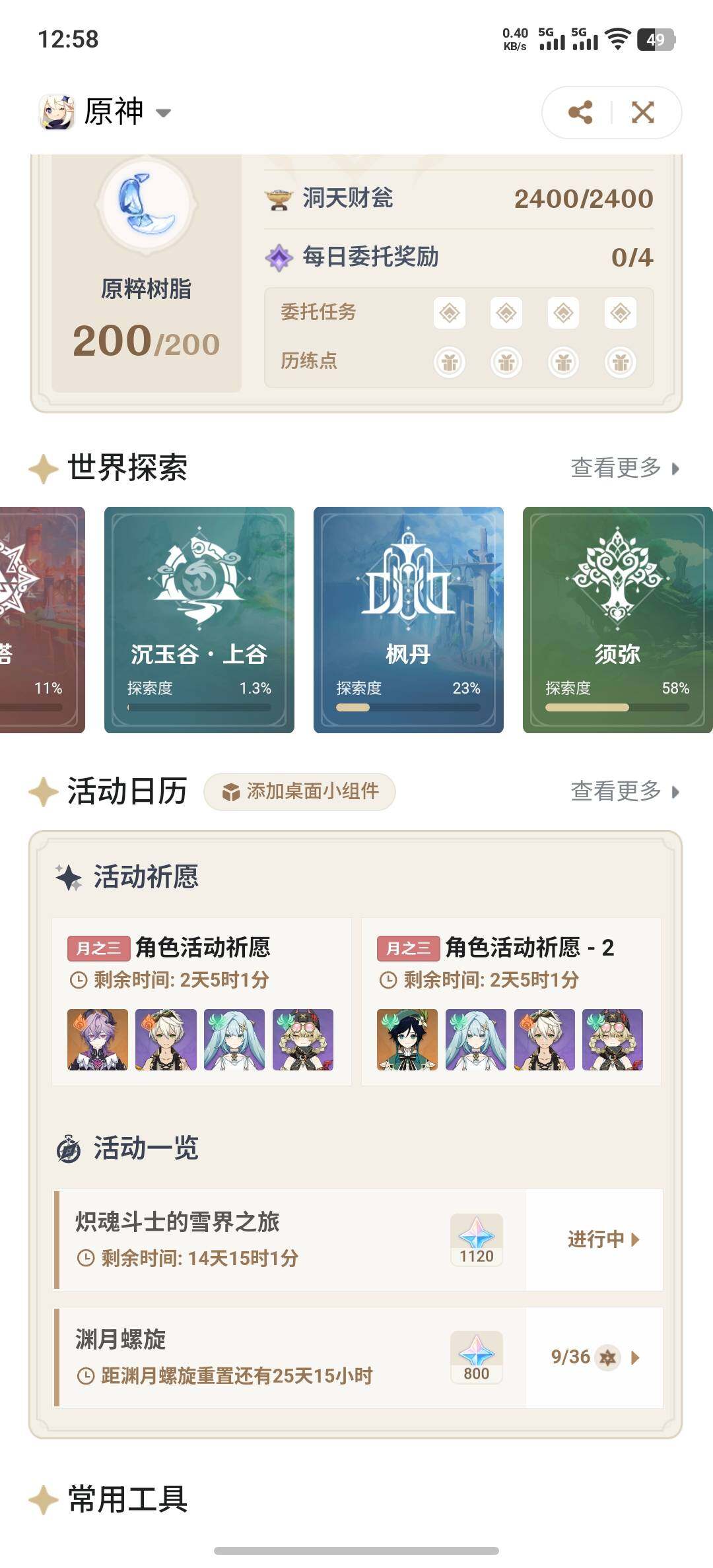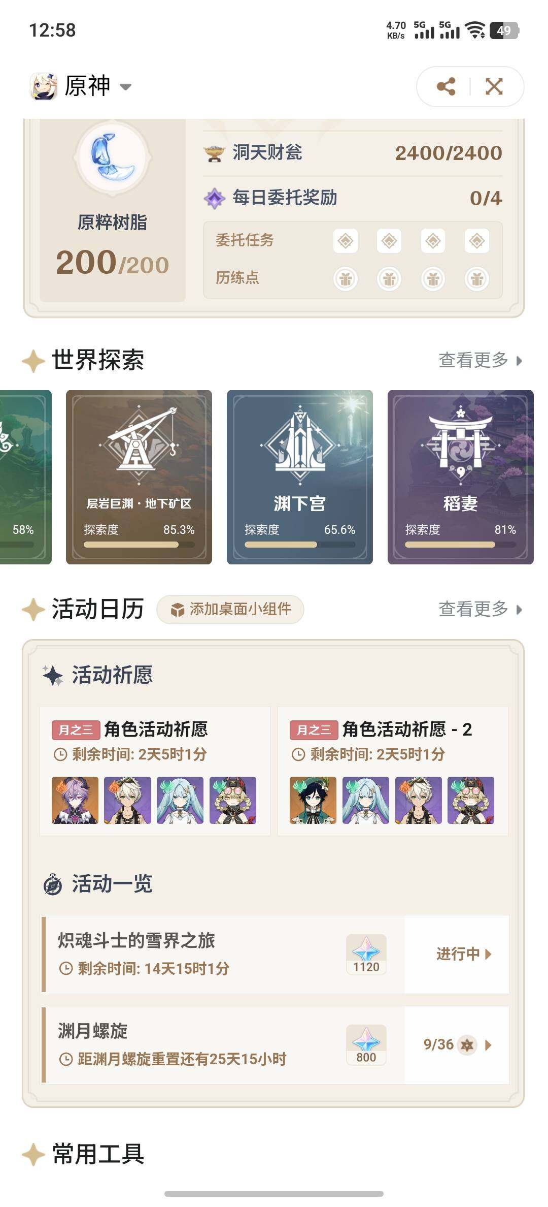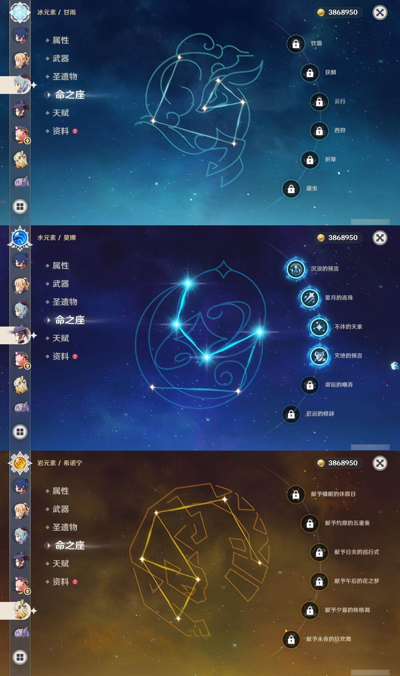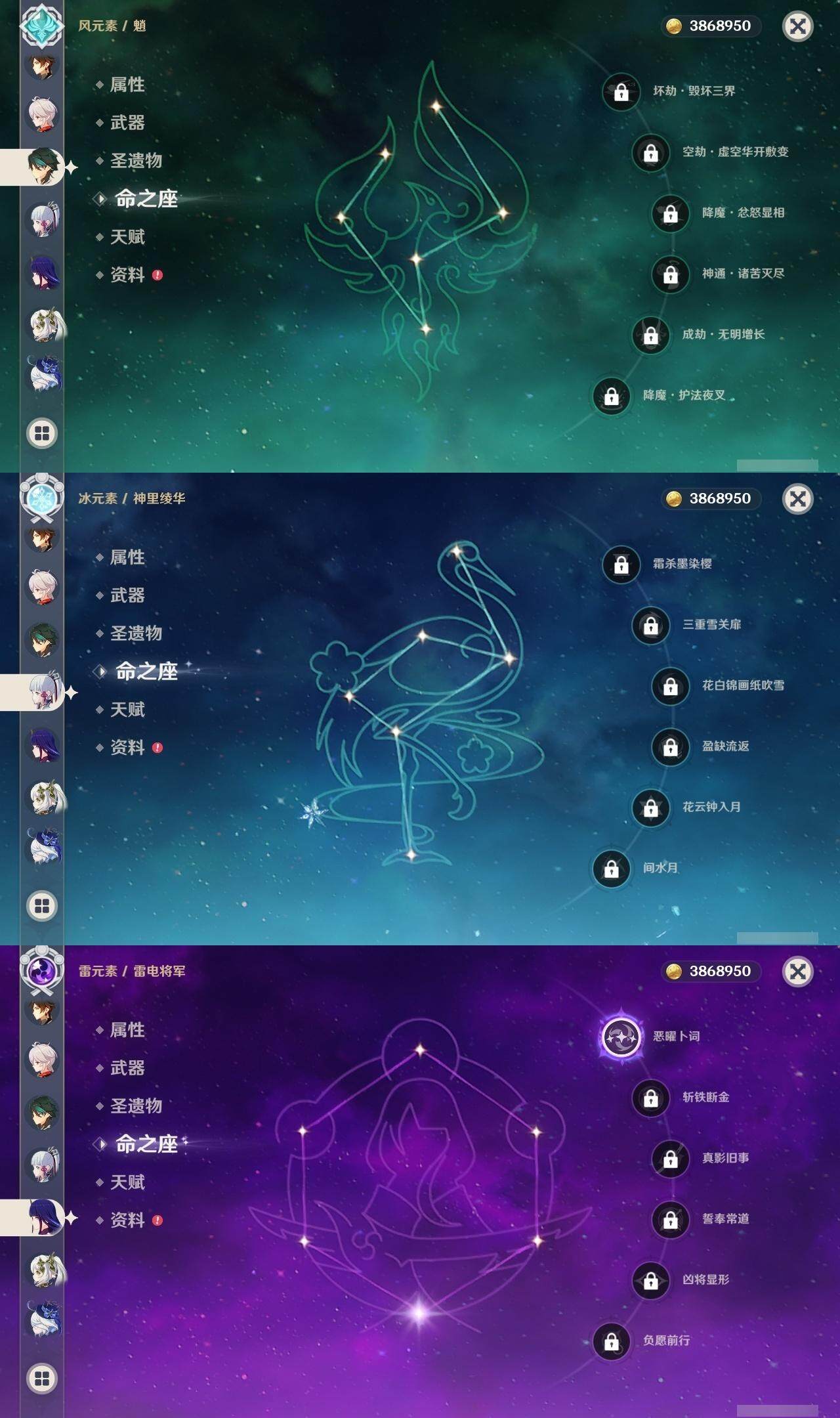 0命芙宁娜,1命那维莱特,0命迪希雅,0命纳西妲,0命妮露,0命提纳里,0命夜兰,1命雷电将军,0命枫原万叶,0命神里绫华,0命钟离,0命甘雨,0命魈,0命达达利亚,1命刻晴,0命琴,4命莫娜,0命希诺宁,0命梦见月瑞希,0命菲林斯,精1静水流涌之辉,精2若水,精1飞雷之弦振,精1雾切之回光,精2四风原典,精1和璞鸢,精1贯虹之槊,精1阿莫斯之弓